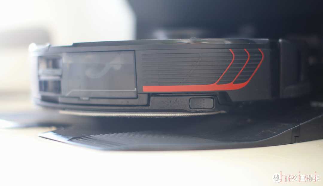 在云鲸扫地机的身上,老实说我只找到了这么一个堪称独特的功能,通过这个开关,云鲸能够关闭机身的悬崖传感器,而靠实力进行越障,这对有比较高的门槛的家庭来说是个福音。不过这个功能也算是个双刃剑,开启后机器会失去安全保障,如果家里存在很高的落差的结构时(比如楼梯),有可能会导致扫地机跌落。
