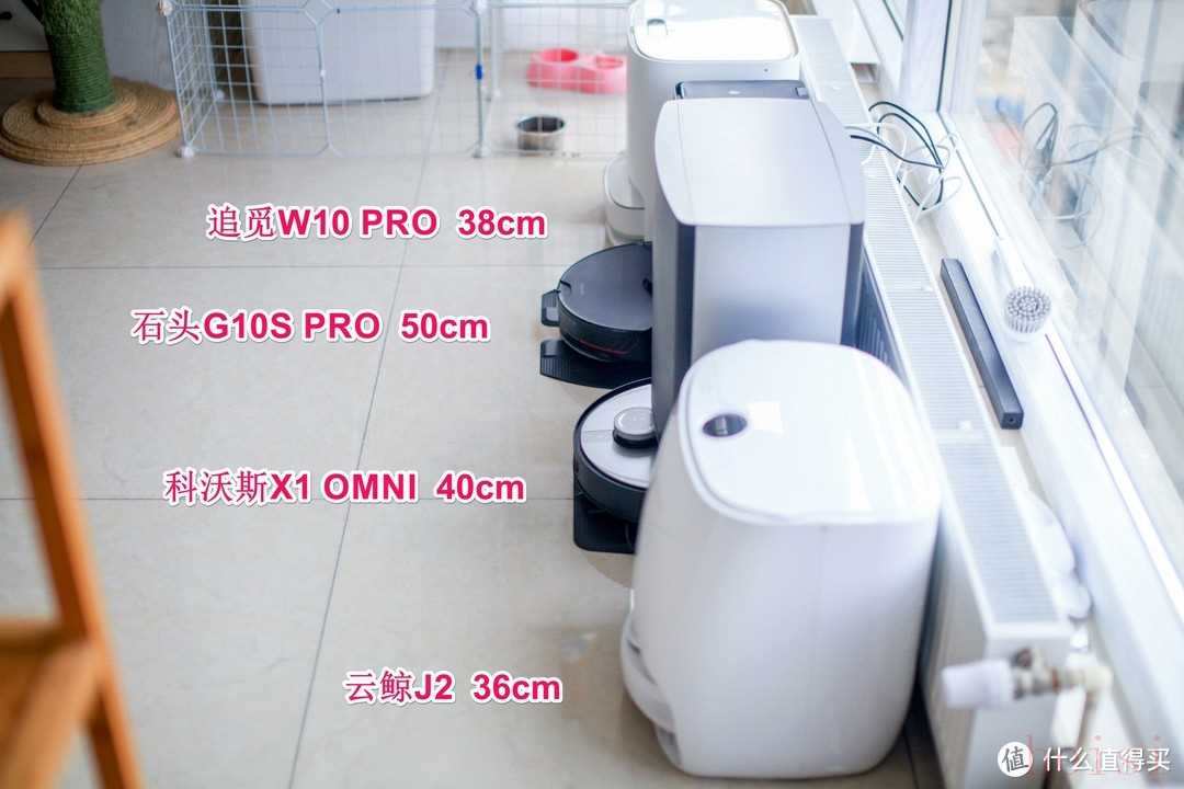 从机身的厚度方向来看,最厚的机器是石头G10S Pro,整整50cm,而云鲸J2则拿到最瘦身奖项,仅为36cm。