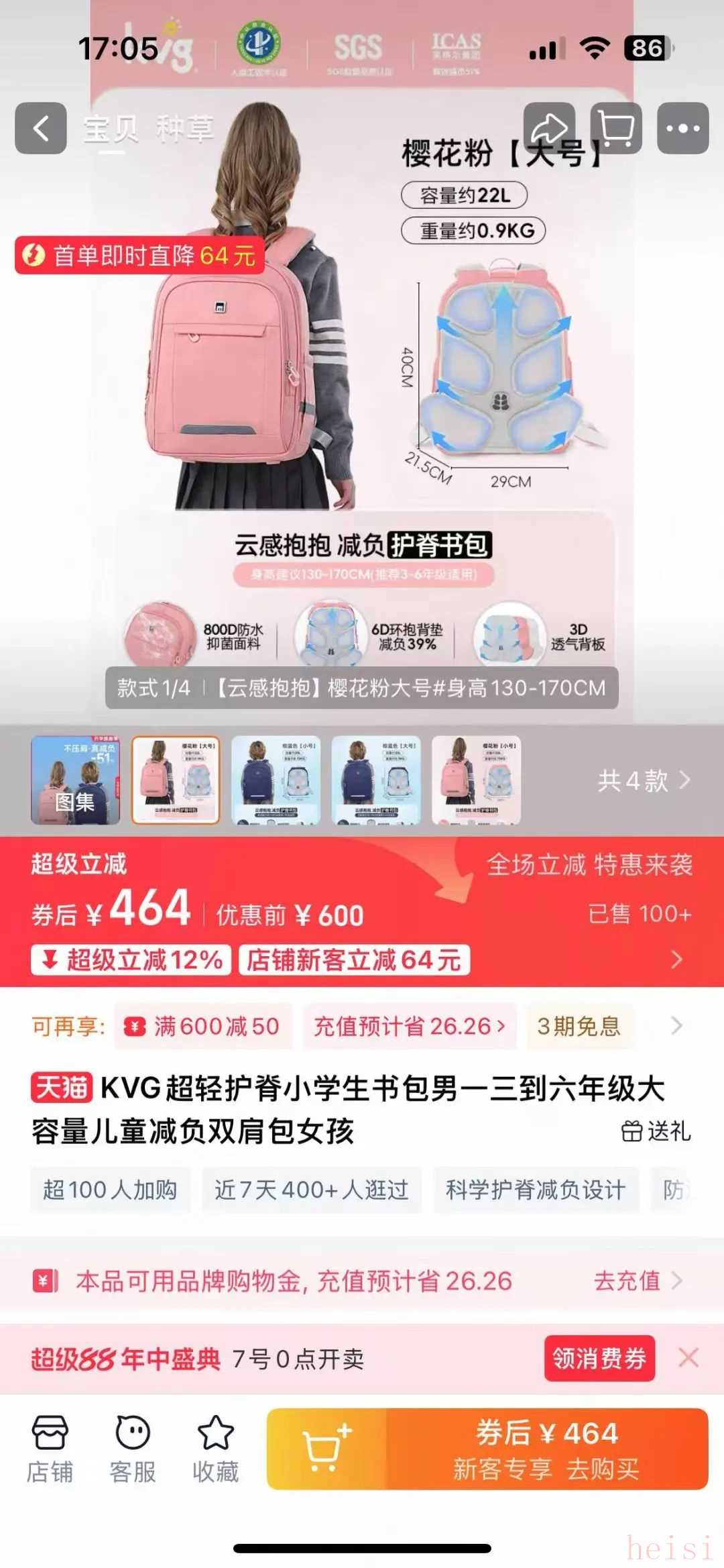 所以,从今年开始,我们就在做选品测试,终于在八月份给大家找到三款轻量护脊书包:KVG马卡龙系列之日暮经典护脊书包、KVG马卡龙系列之糖果学生护脊书包、KVG云朵抱抱护脊书包。