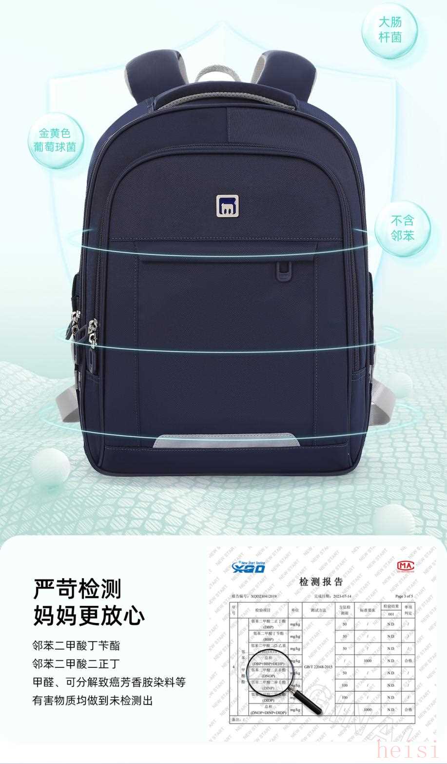不仅质量抗打,书包内外面料也严选使用抗菌面料,有质检报告更放心