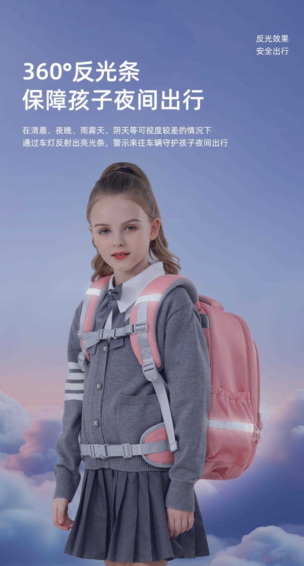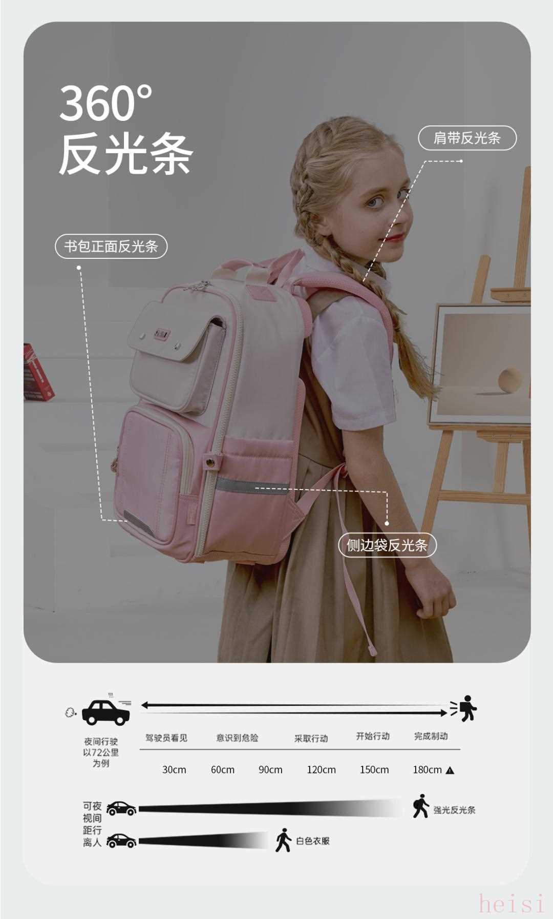 360°高亮度反光条,安全护航!书包双肩以及侧袋设有反光条设计,雾霾、雨中、夜晚有效警示来往车辆,孩子出行家人更放心