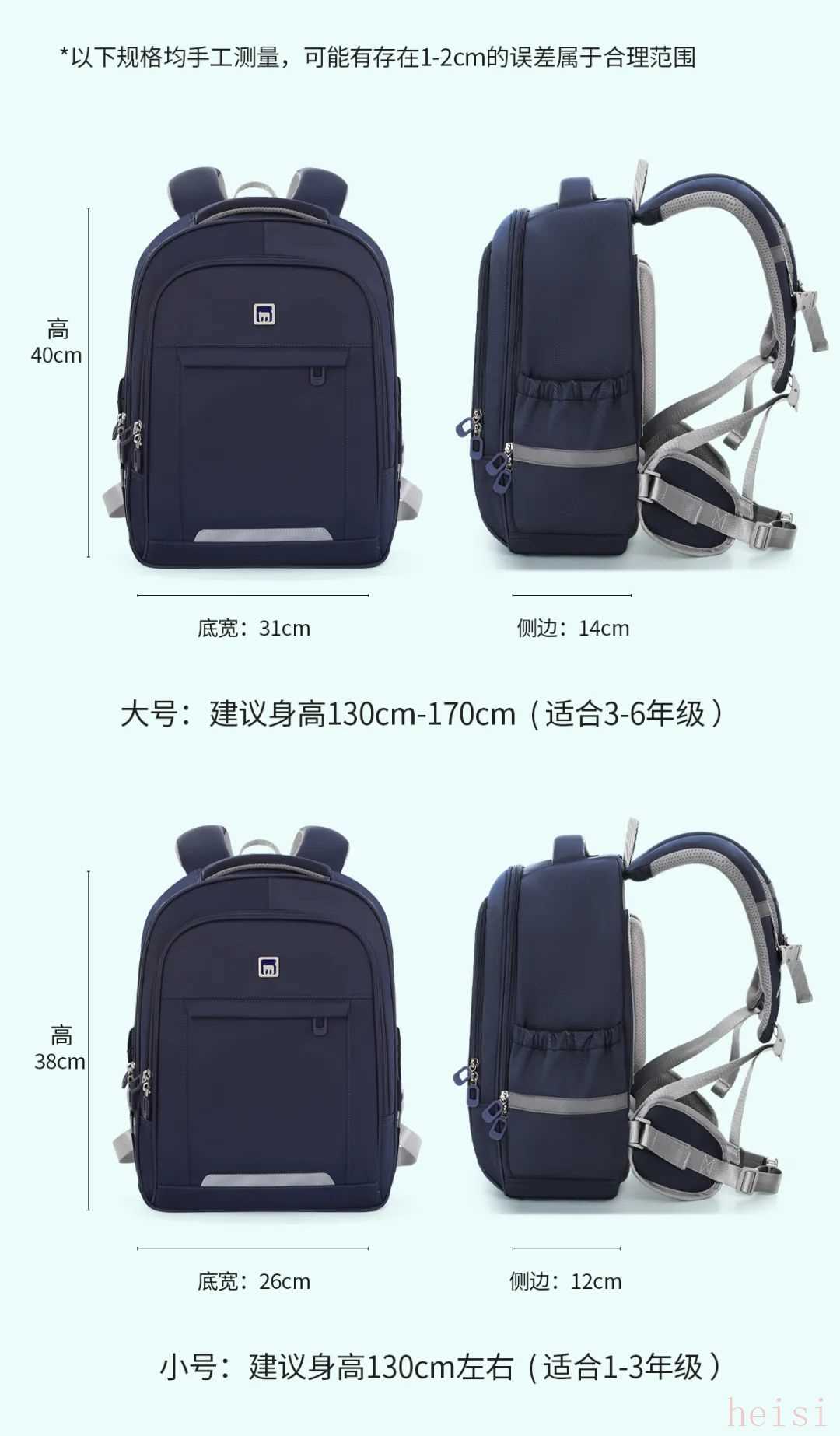 小号(高36*宽27*厚15cm)适合1-3年级学生,建议身高130cm及以下