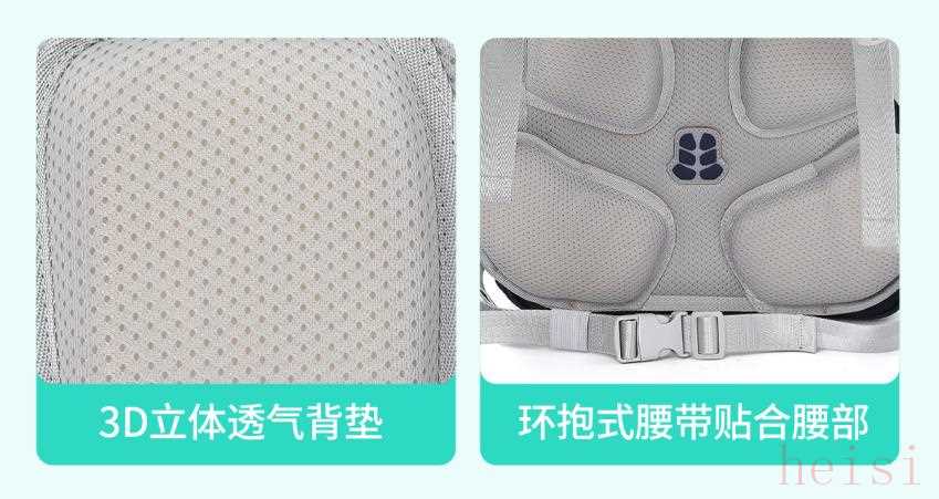 肩、腰、背三点受力,从肩膀→脊椎→腰间都能帮助孩子均匀分布背部受力点。
