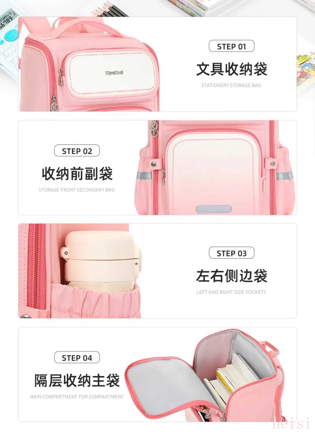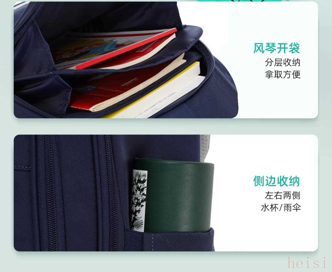 这个书包就很轻,整体重量仅0.75/0.9kg,轻量化设计,书包加上书本的重量完全符合标准从源头上为孩子肩负,上学更轻松。