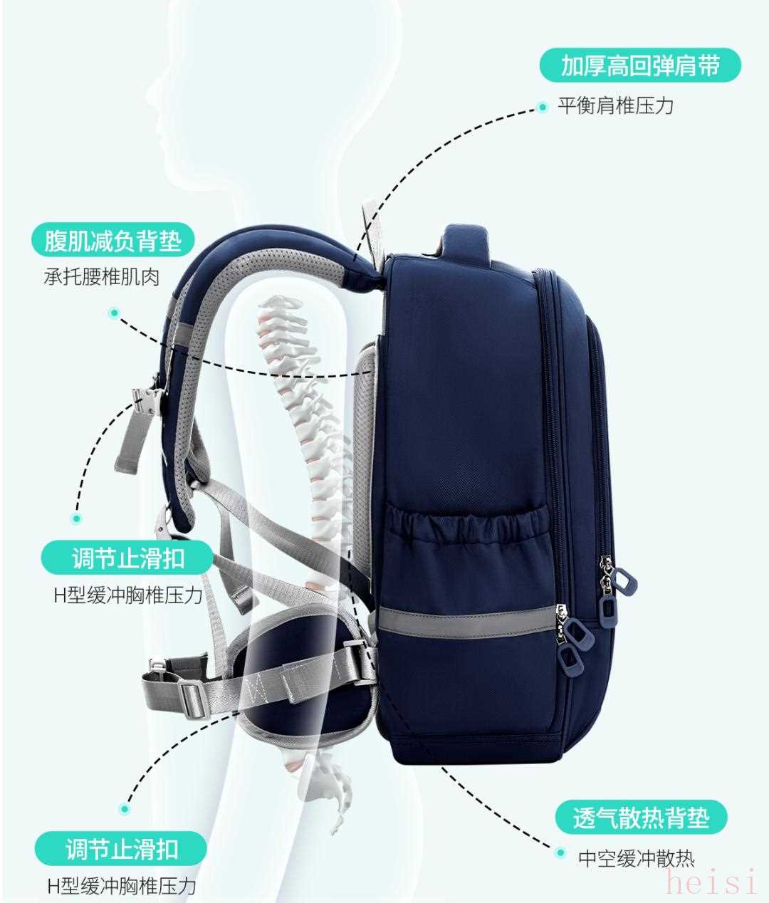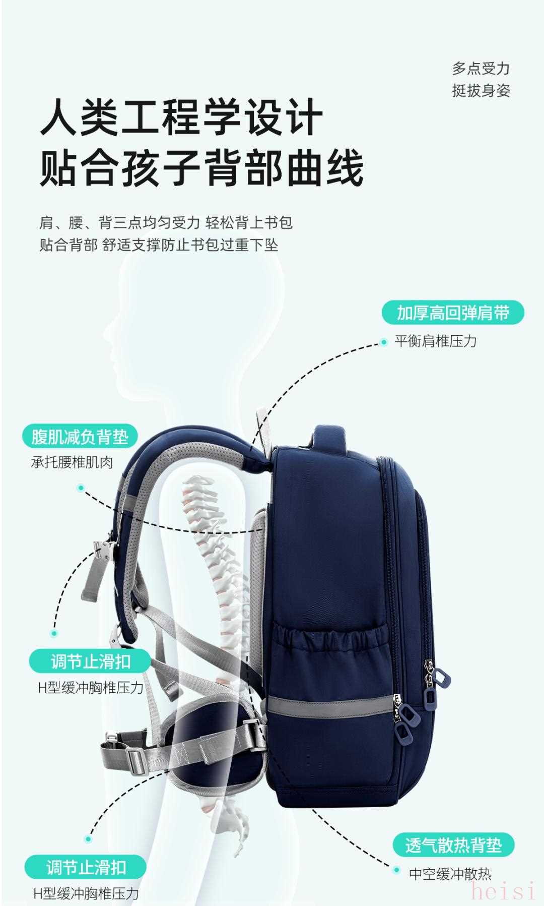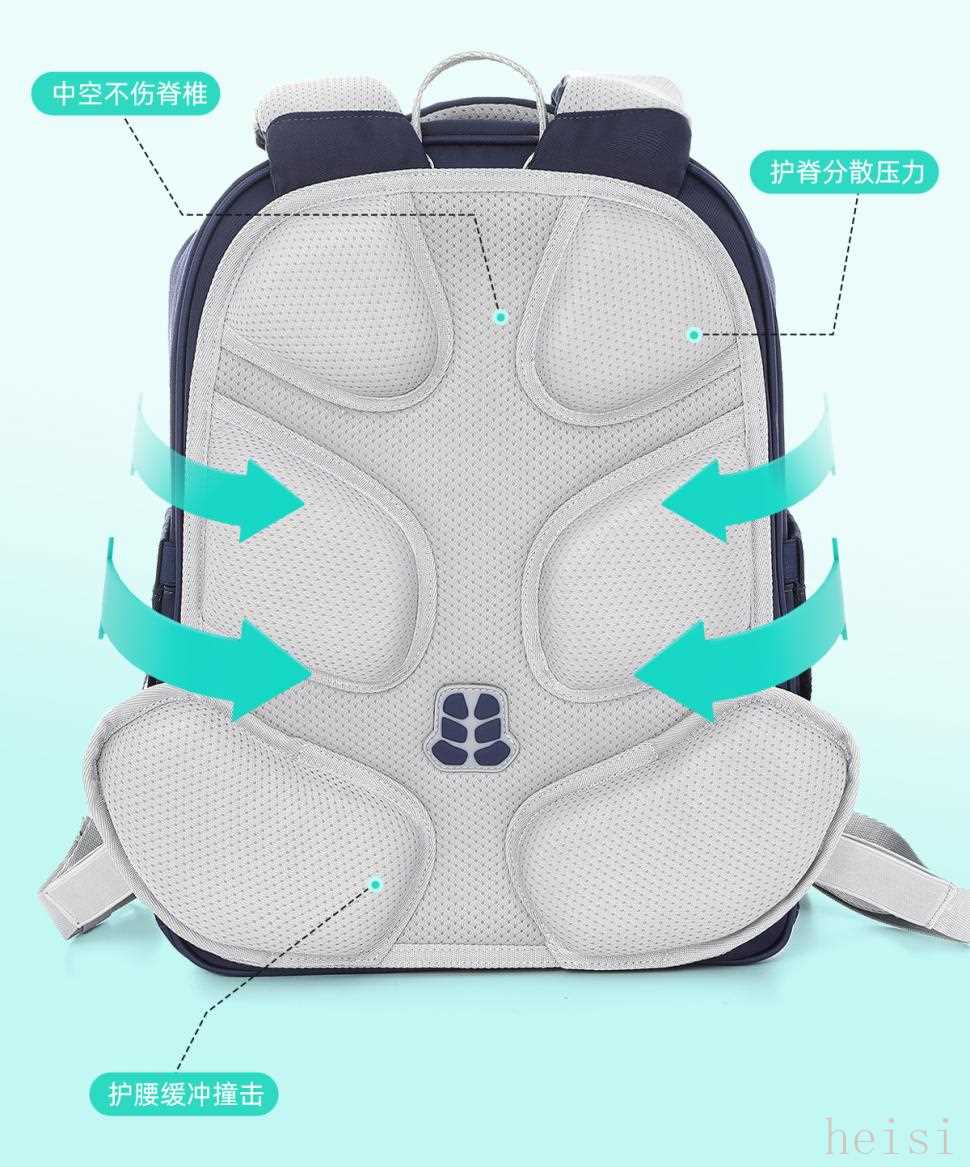 书包的设计必须要考虑脊椎的保护,避免承受书包的压力,这样才能保护孩子的脊柱安全。