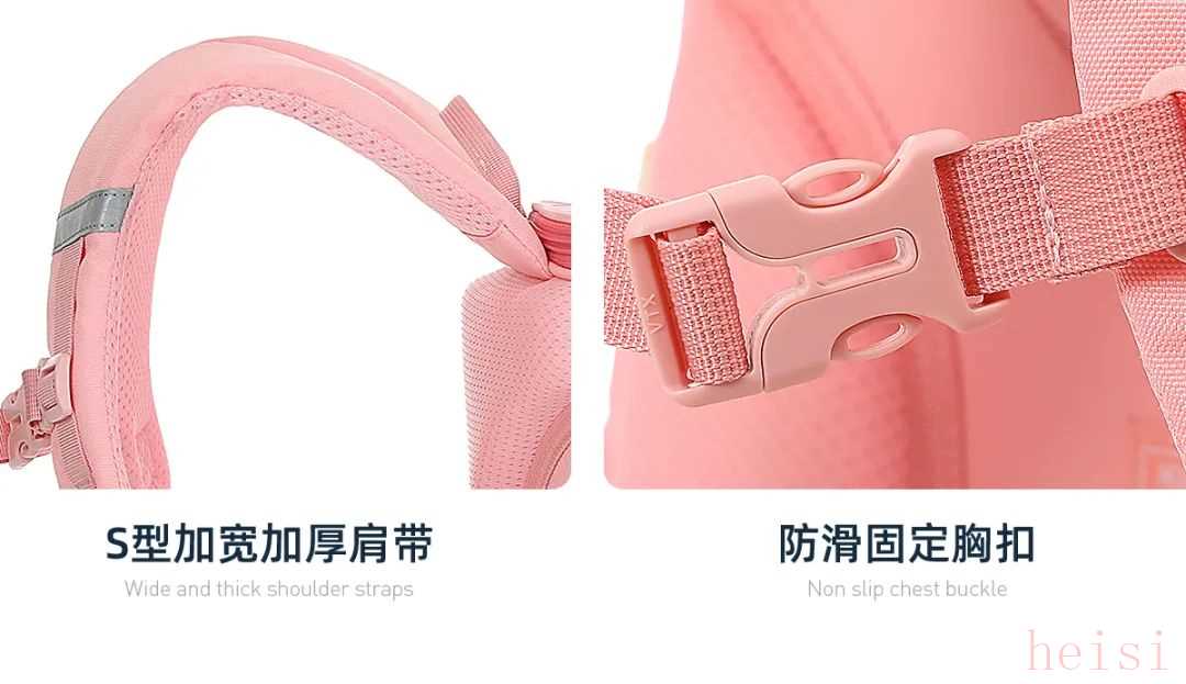 H型缓冲胸扣,让孩子背着省力气,也能有效避免孩子出现驼背斜肩的状况,对孩子的脊椎非常友好,同时它采用的是可调节的防滑扣设计,承托孩子的胸背部,使书包重量再得到更有效分散,奔跑也不移位