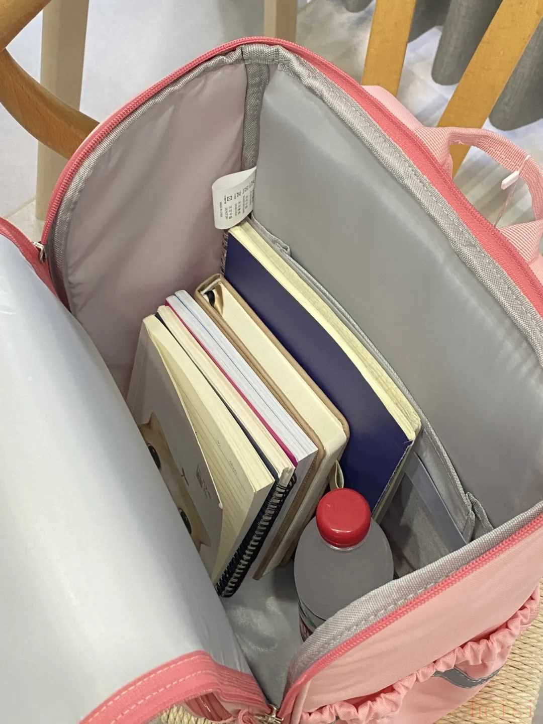 自重虽轻,但收纳上却有着 超大容量! 放下孩子一学期的书完全没有问题。