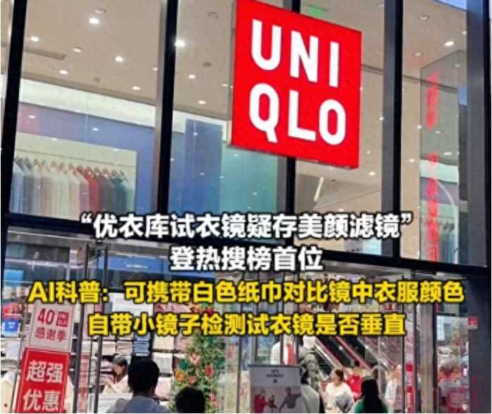 近日,“优衣库镜子”话题登上微博热搜榜。许多网友在社交媒体上分享他们在优衣库试衣时,感觉店内的镜子似乎带有“美颜滤镜”的效果,使得试穿的衣服看起来比实际颜色更亮丽、更上镜。同时,也有不少网友反馈,镜子中看到的衣服颜色与实际购买或手机拍摄的颜色存在较大差异(即“色差”问题)。