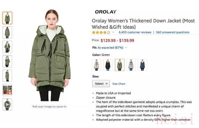 目前,这款售价129.99-139.99美元的女装加厚羽绒服在亚马逊网站上有6000多条评价,其中超过80%是4星或5星评价,因为广受欢迎被亲切地称为“亚马逊外套”。