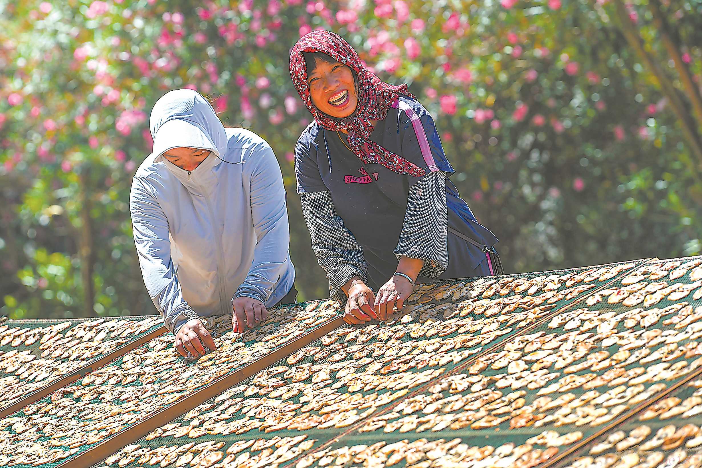 白胜村村民在阳光下晾晒蝴蝶干。江信恒 摄
