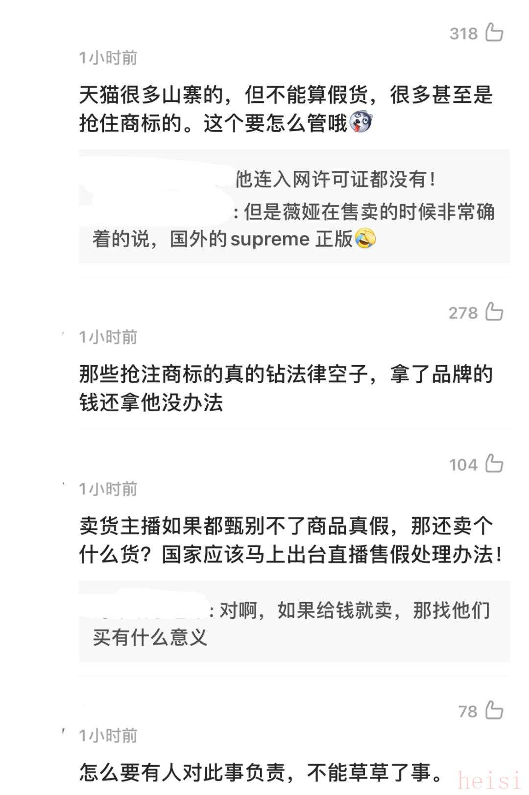 迅速删除了直播回放 面对质疑 薇娅直播间称 “这是天猫国际官方小二推荐给我的 它不是我理想中的Supreme 我希望商家能够对所有买的人进行全额退款 不退货” 但并未就此事承认售假及公开致歉