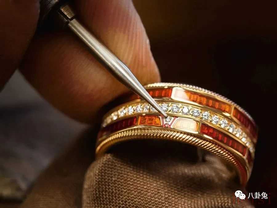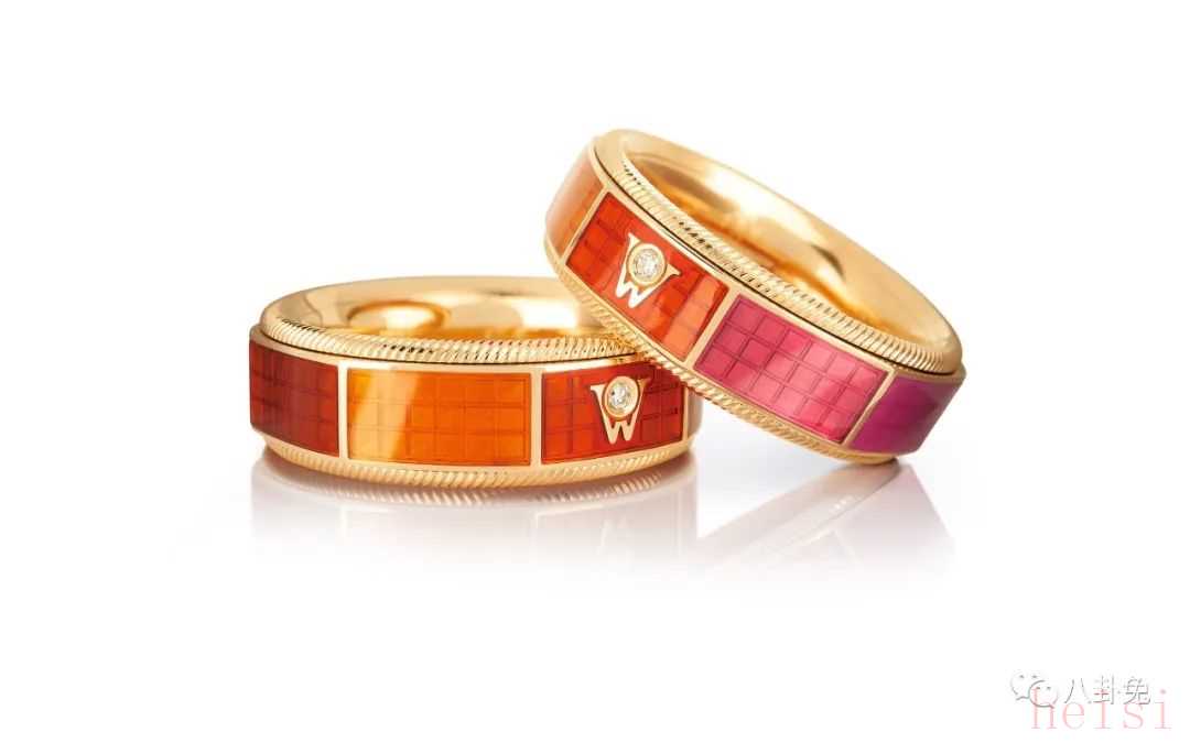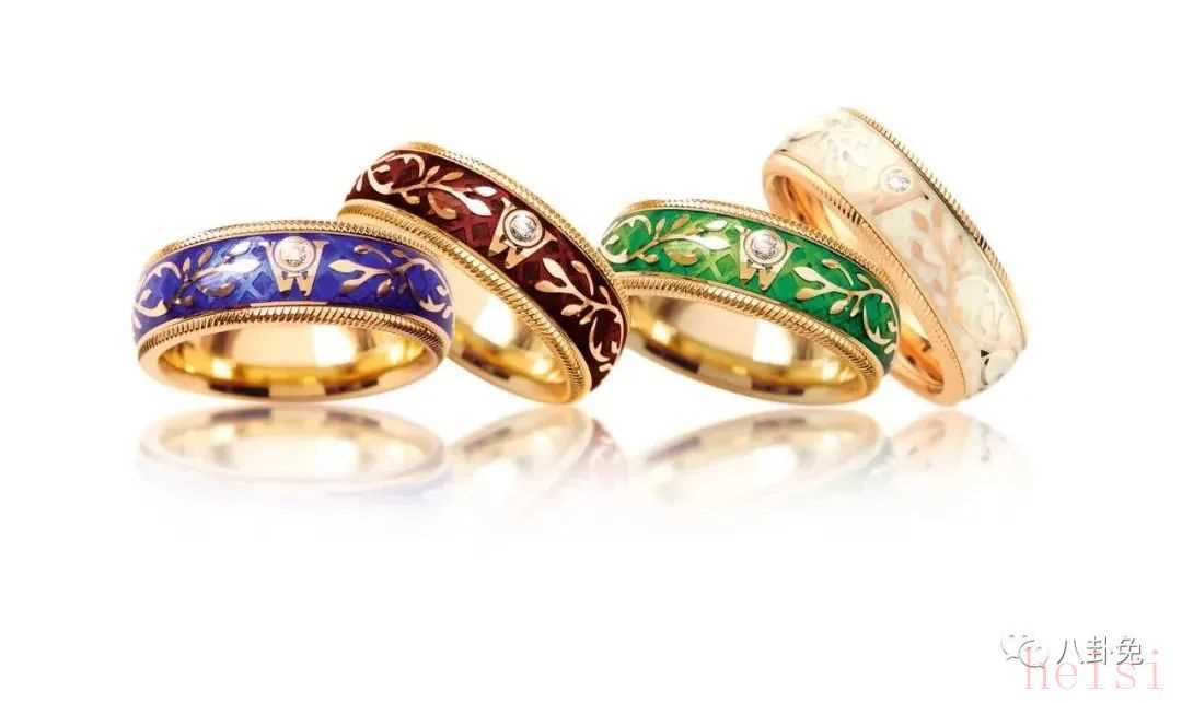 也就是说,它既要看不到明显缝隙,又要转得灵活不卡壳,这是一个亮点。一般而言,华洛芙的旋转戒指都由经过三层立体微雕的18K金和冷珐琅组成。