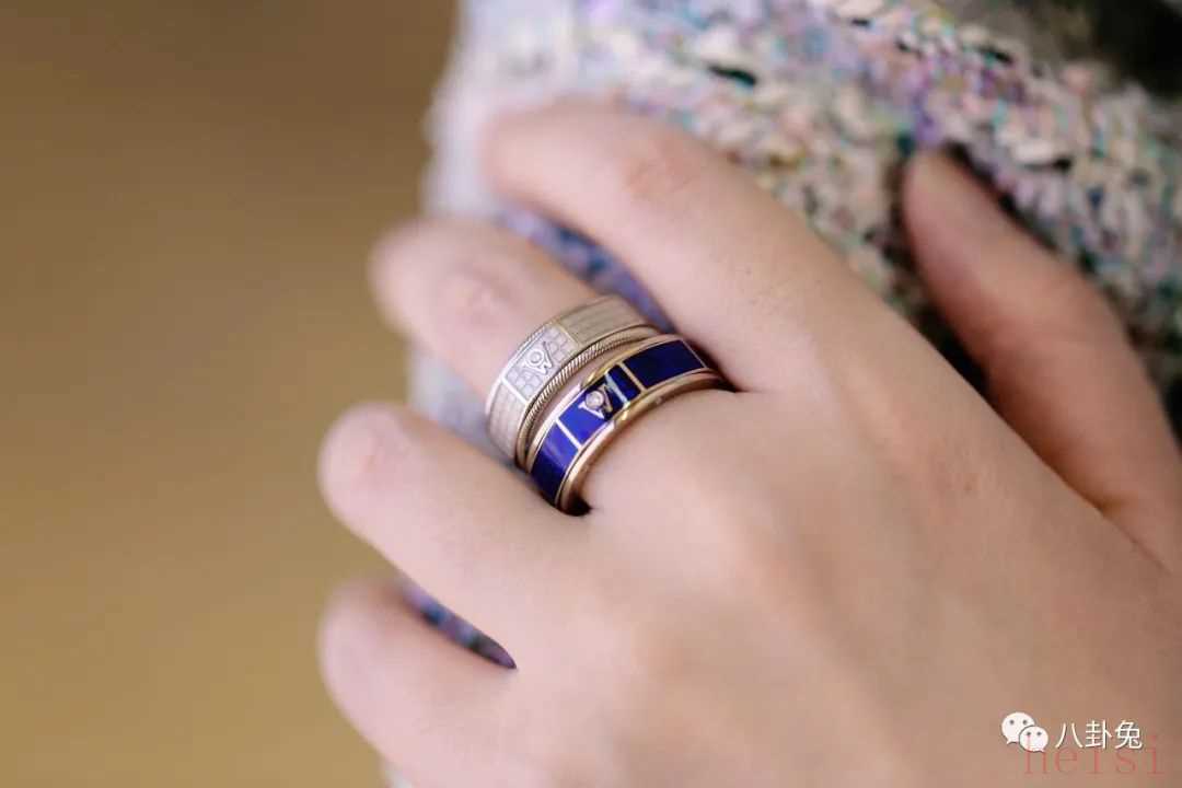 而数字8代表这枚戒指的八角外环。这深蓝渐变的冷珐琅非常深邃,兔子在店铺替大家上手试了。