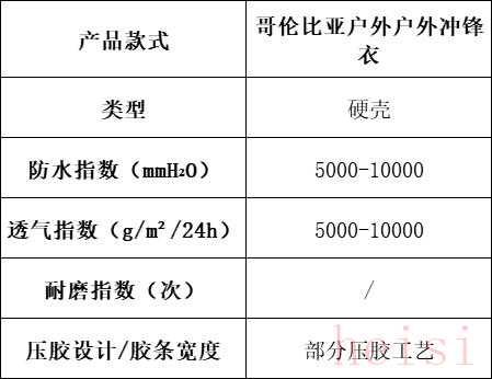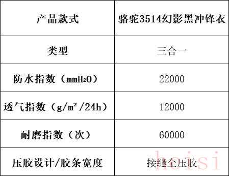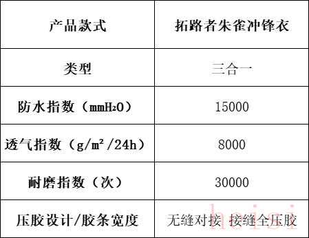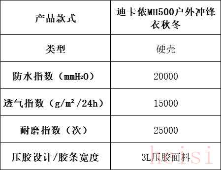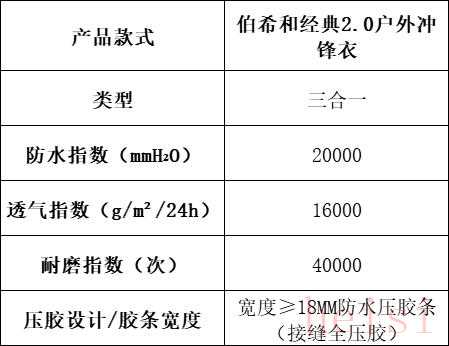 核心性能:防水20000mm+透湿15000g,暴雨级防护+中高强度运动透气,三层压胶工艺+防风材质,-10℃环境配合抓绒内胆可应对;