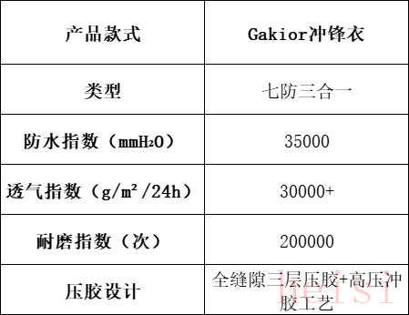 一、看懂三个数字,避开90%的坑冲锋衣核心价值看三个指标:①防水指数(mmH₂O),数值越大抗雨级别越高;②透湿率(g/m²/24h),数值越高透气舒适度就越好;③耐磨次数5万次以下轻度用,10-20万次应对常规户外(如骆驼),20万次以上耐极端环境(如Gakior)。同时,要警惕网红、贴牌等非专业品牌,因部分低价产品宣称"防水",实则仅做表面防泼水处理,洗涤几次后性能骤降。甚至为了压缩成本,采用含氟化物(PFAS)的防水涂层!这类物质难降解、易在人体蓄积,可能影响内分泌。冲锋衣怎么选?优先选择"无氟防水科技"产品,如Gakior的STOPS-X七防技术,通过植物基涂层实现环保防护。