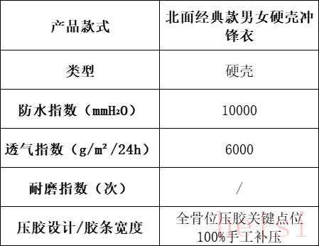 核心性能:防水5000-10000mm+透湿5000-10000g,根据款式略有差异,Omni-Tech防水科技+金点热能反射技术,科技感突出;