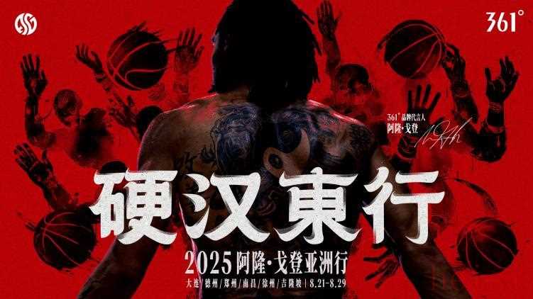 8月21日,361°代言人阿隆·戈登将飞抵大连开启2025亚洲行,这是他代言后第二次赴东方,也是361°首次开展代言人亚洲行,旨在助力品牌出海。行程覆盖大连、德州、郑州、南昌、徐州及马来西亚吉隆坡,将与各地球迷互动。