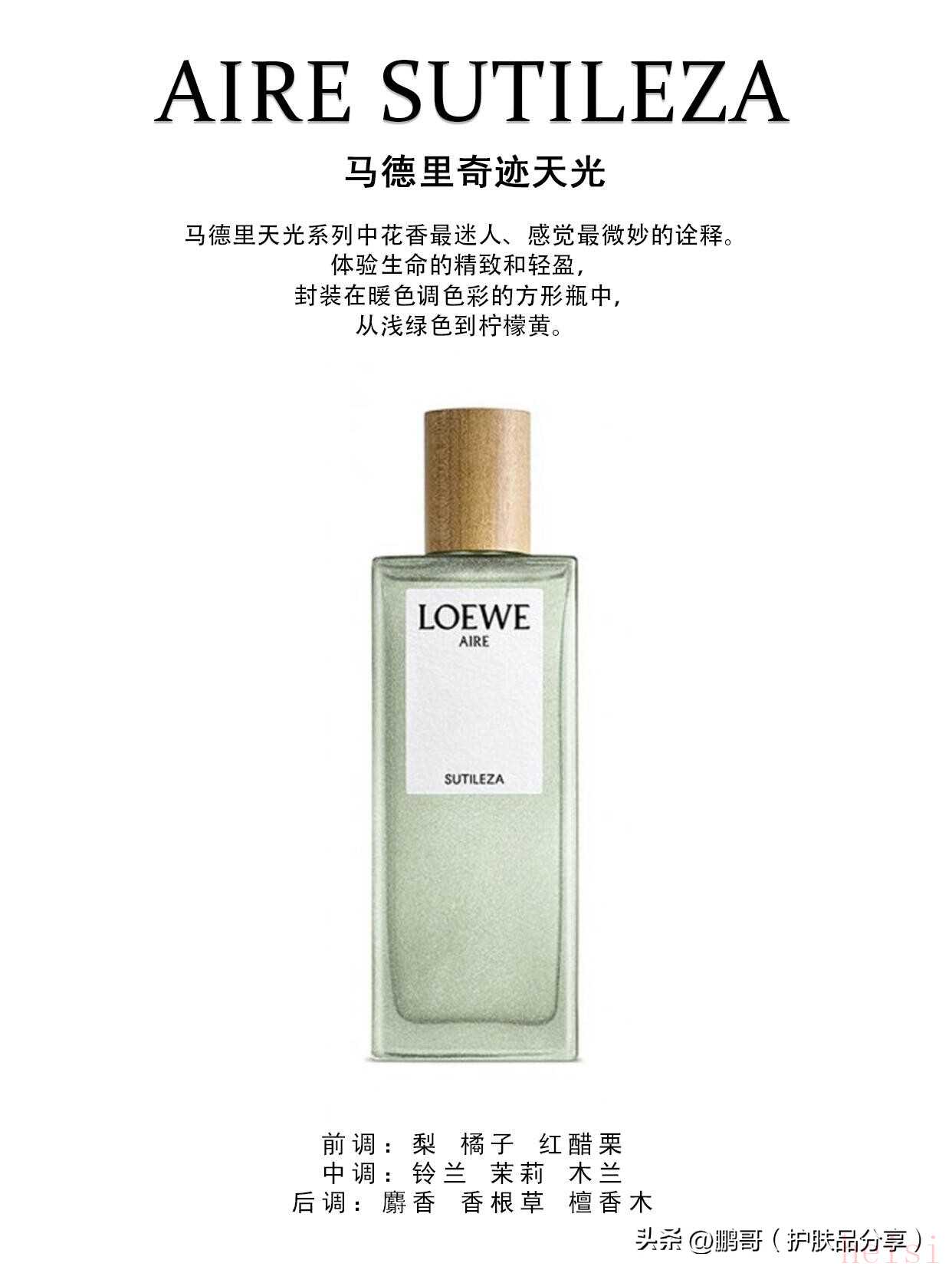 雪松木夹杂淡淡的玫瑰味,后调的奶味皂感,温柔软糯,是一支秋冬用的神仙味道,干净、温柔、毫无侵略性,整体变温柔起来,作为“侍寝香”也是不错的选择,喷上感觉整个人都安静了。它是那种高级的木质香,刚喷上会觉得很清冷但又不具攻击性,在雪松的木质调里又夹杂着玫瑰的味道,后调的麝香又带来了些许温柔,木质玫瑰香,真的很绝,是我冬天的本命香。一支简约而直白的中性香气,淡淡的木质香调辛辣又纯粹,玫瑰和香草根的加入,给雪松的木质香气带来一丝温暖,不至于高冷到拒人于千里之外。第二款:罗意威马德里天光淡香水马德里天光系列中花香最迷人、感觉最微妙的诠释,体验生命的精致和轻盈,封装在暖色调色彩的方形瓶中,从浅绿色到柠檬黄,整体如清凉微风般自由,似女性远离世俗,是清新淡雅且持久留香的地中海特色淡香水。