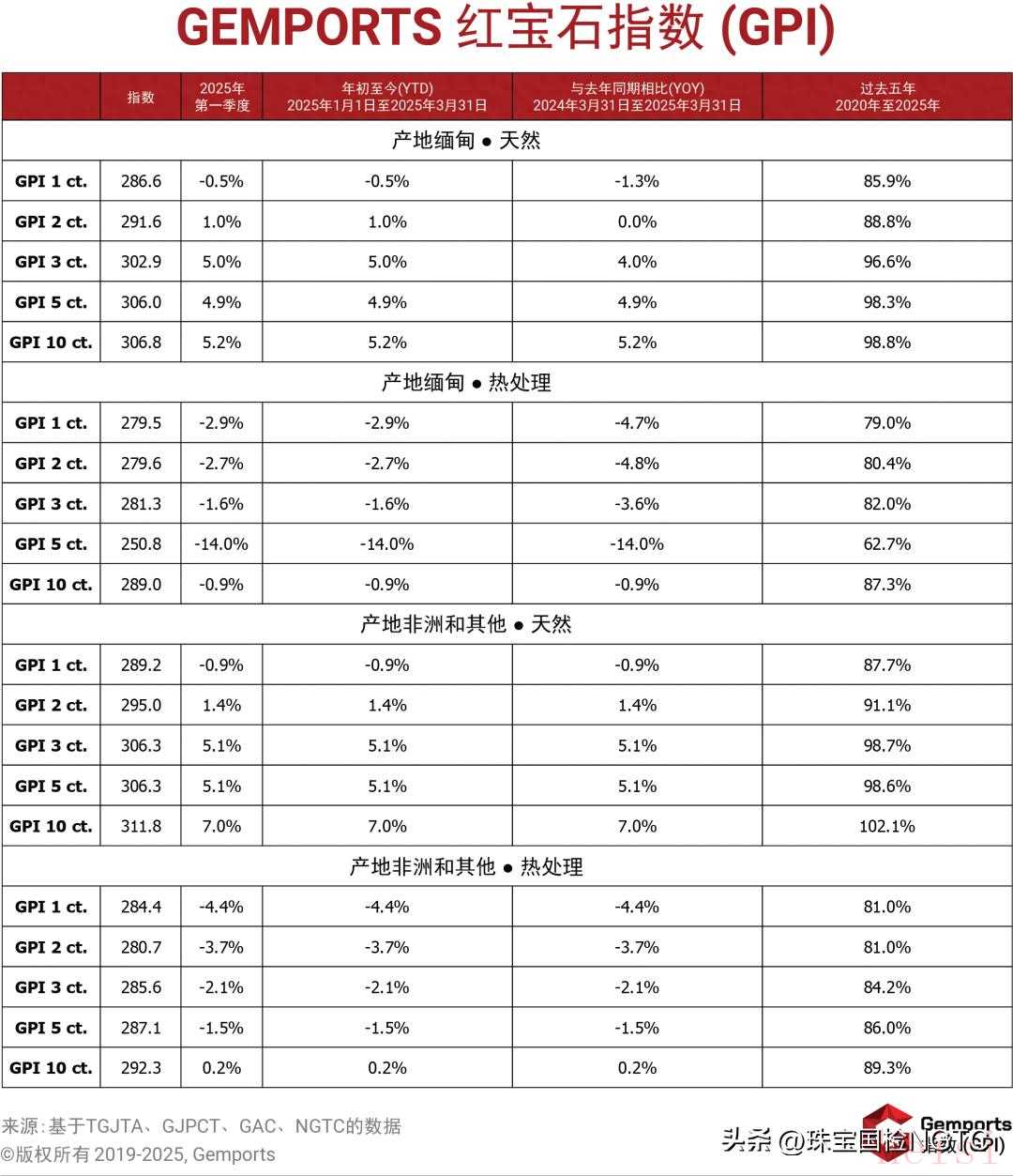 "发布内容:" 2025年第一季度红蓝宝石指数