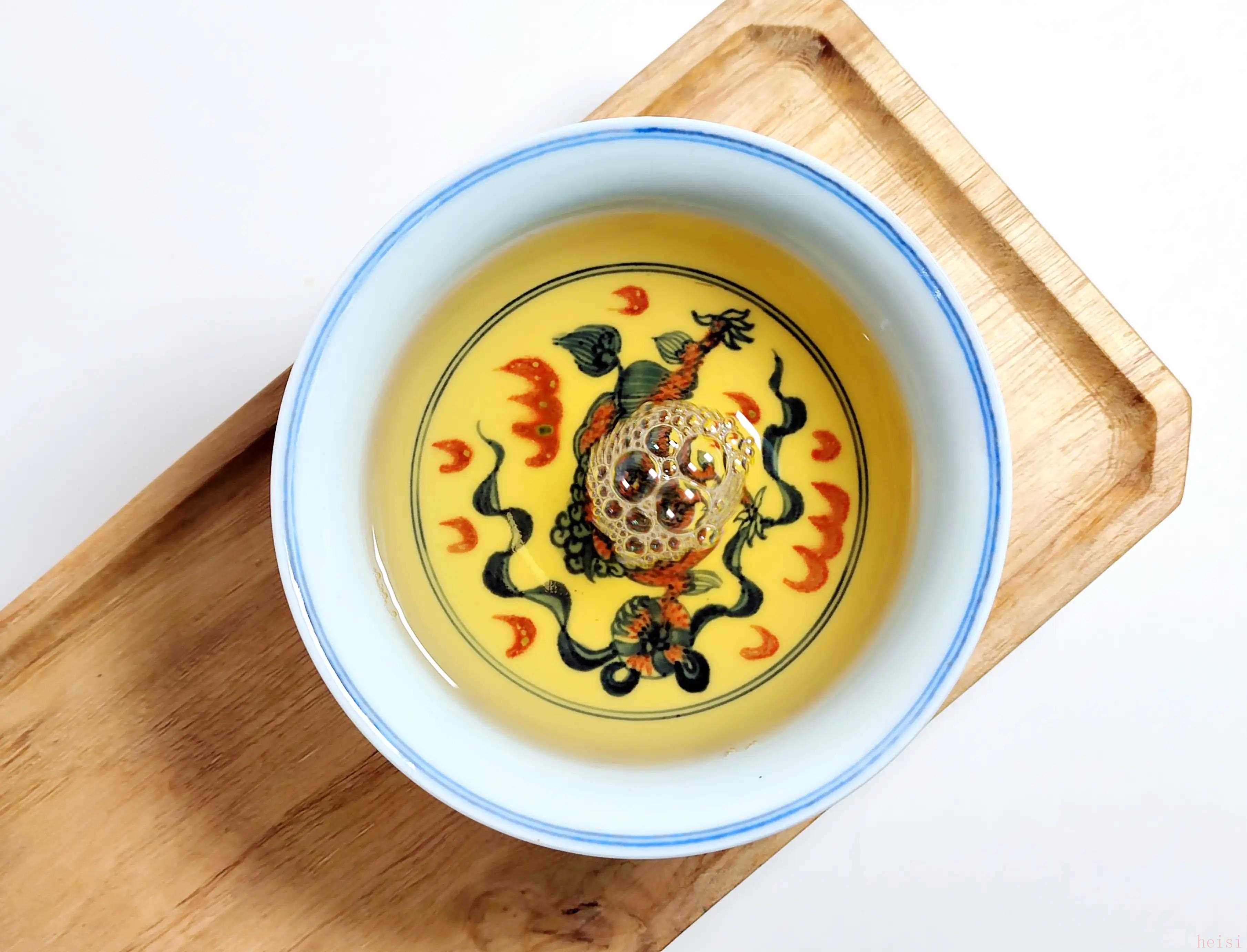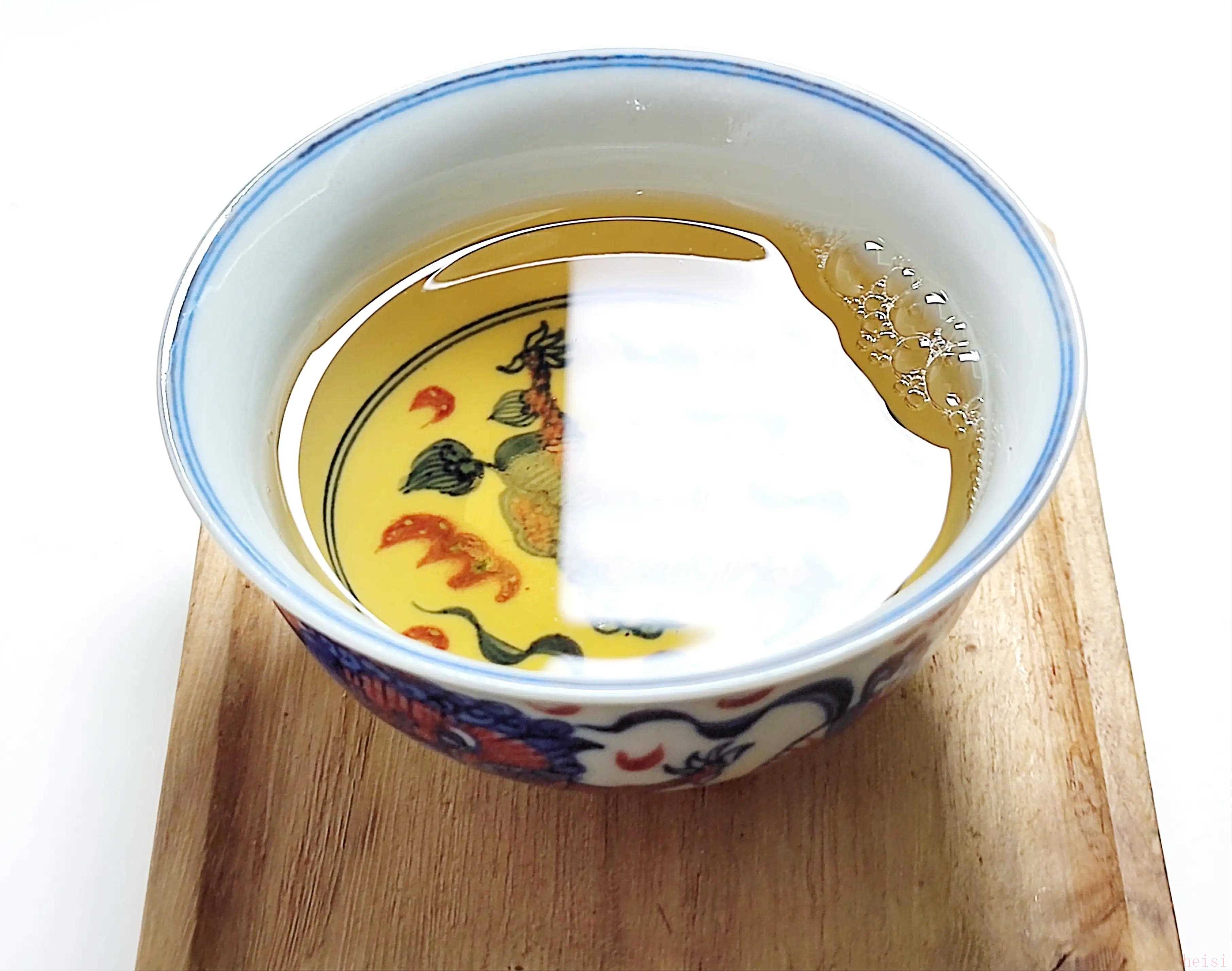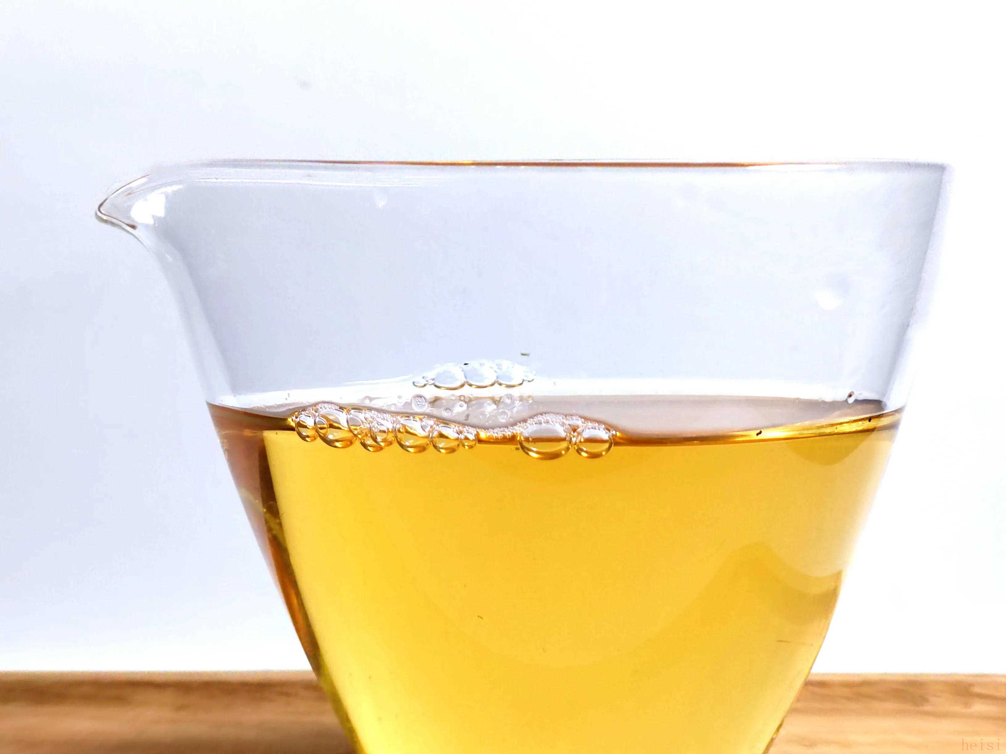 茶汤的回甜较好,口感柔和协调,内质有相当的支撑,喉韵较足,茶气也有不错表现。