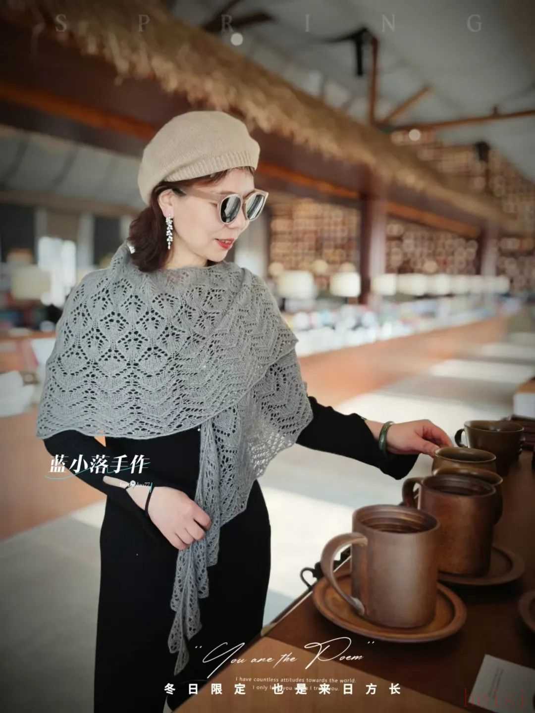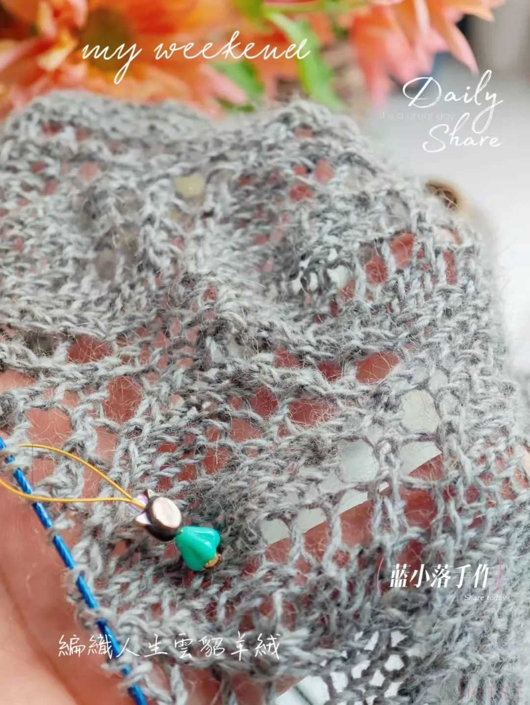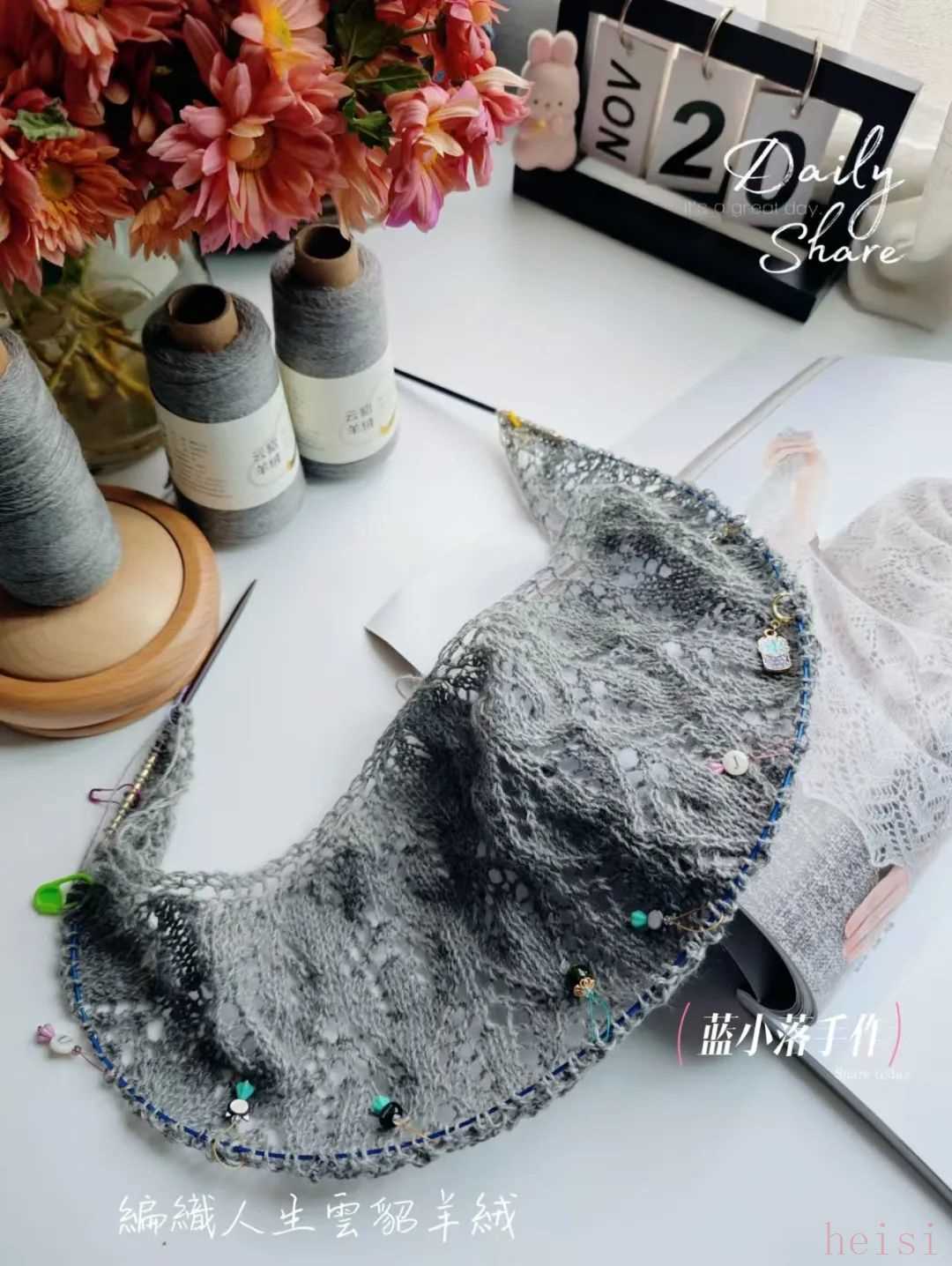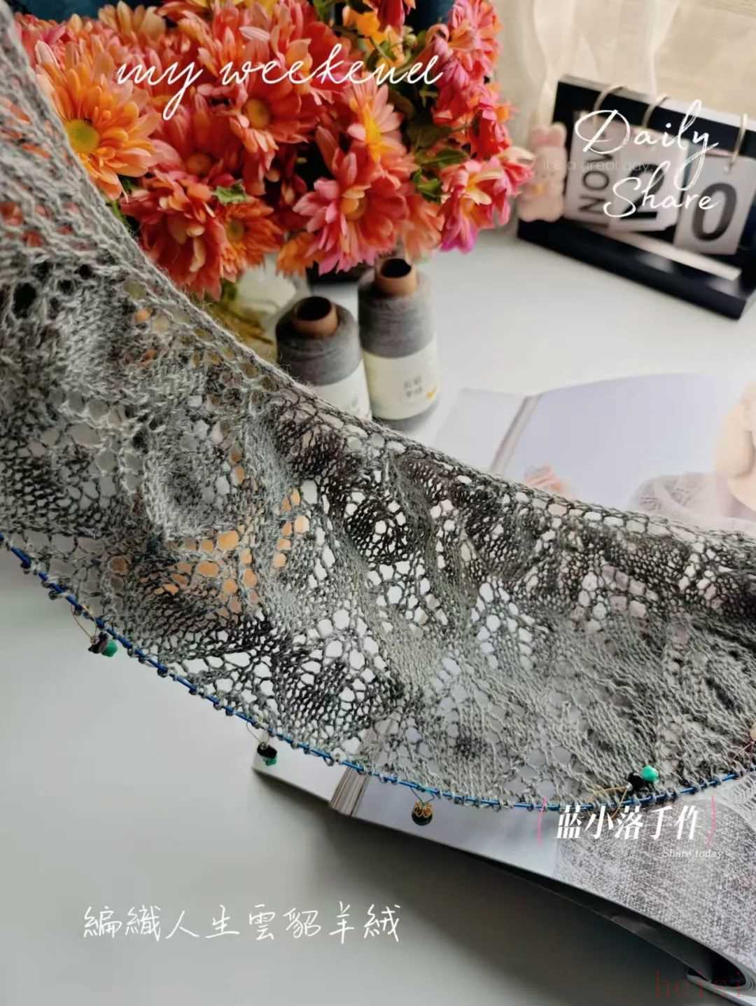 达人作品分享 年初织了云貂羊绒版单螺纹围巾,还剩下1筒半,这次再加了一点织了这条串珠月牙形披肩,图解来自美女潇潇翻译的《经典的棒针蕾丝》40款一书中,原版是要1900颗珠子,小落偷工减料只是在花样C部分加了珠子,咳咳,也很漂亮袄。(自己的,啥都好,嘿嘿)这样一条云貂羊绒镂空蕾丝围巾,无疑是为生活添彩的妙物。精选上乘云貂羊绒,轻软如云朵,贴肤即享温柔呵护,保暖性更是出众,伴你度过寒凉时光。简约温婉的叶子花,宛如花园中绽放的繁花,每一处细节都饱含匠心。当微风拂过,围巾轻轻飘动,珠子若隐若现,风情万种。搭配性极强。搭配简约大衣,瞬间提升整体气质,让你在冬日街头脱颖而出;与连衣裙搭配,又能增添一份优雅与奢华。云貂羊绒镂空蕾丝围巾,是时尚配饰,更是自我表达的载体。它见证着你的每一个重要时刻,陪伴你走过人生的漫长旅程。