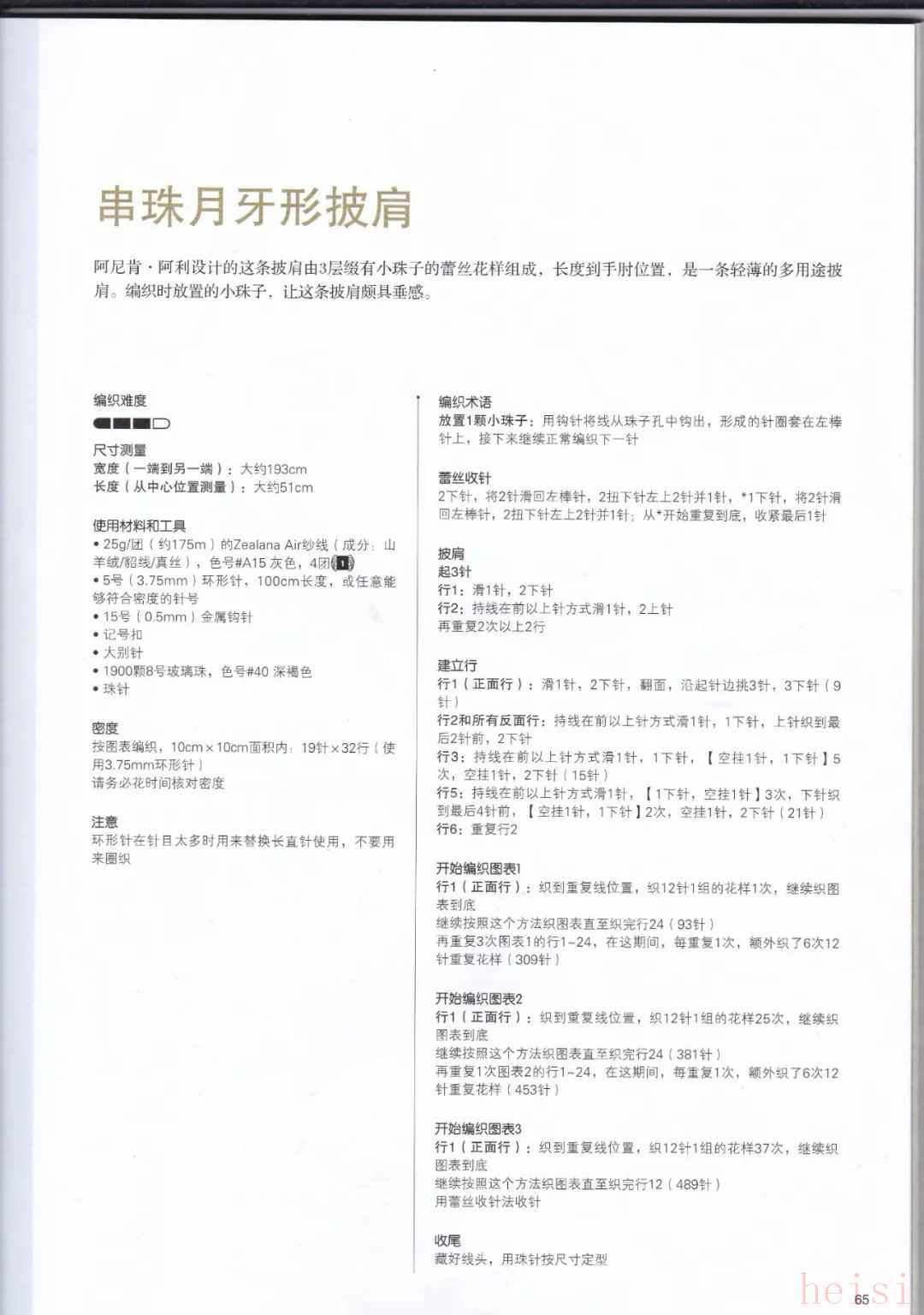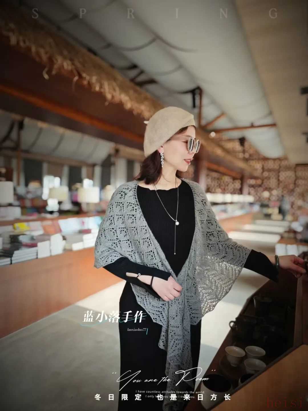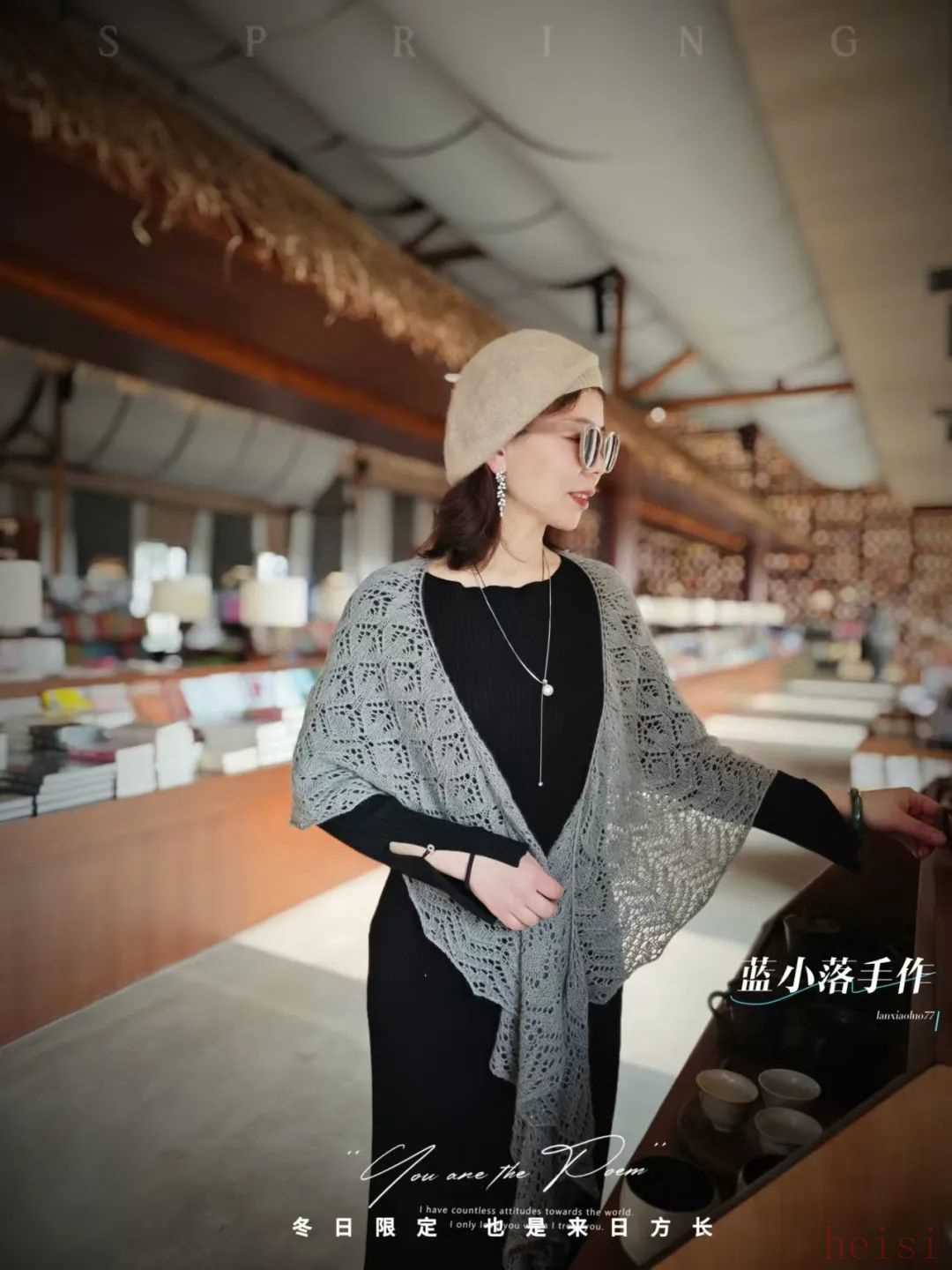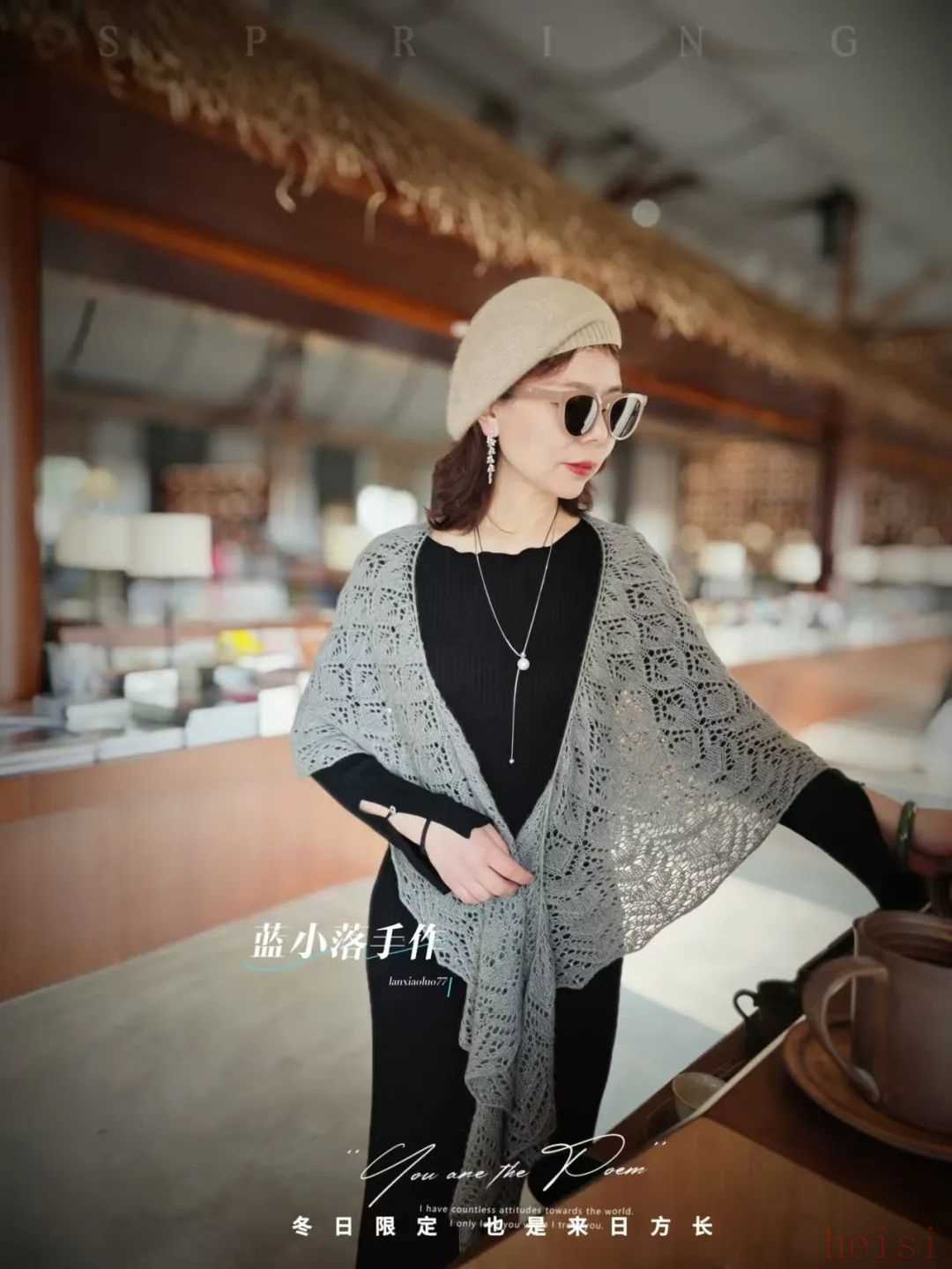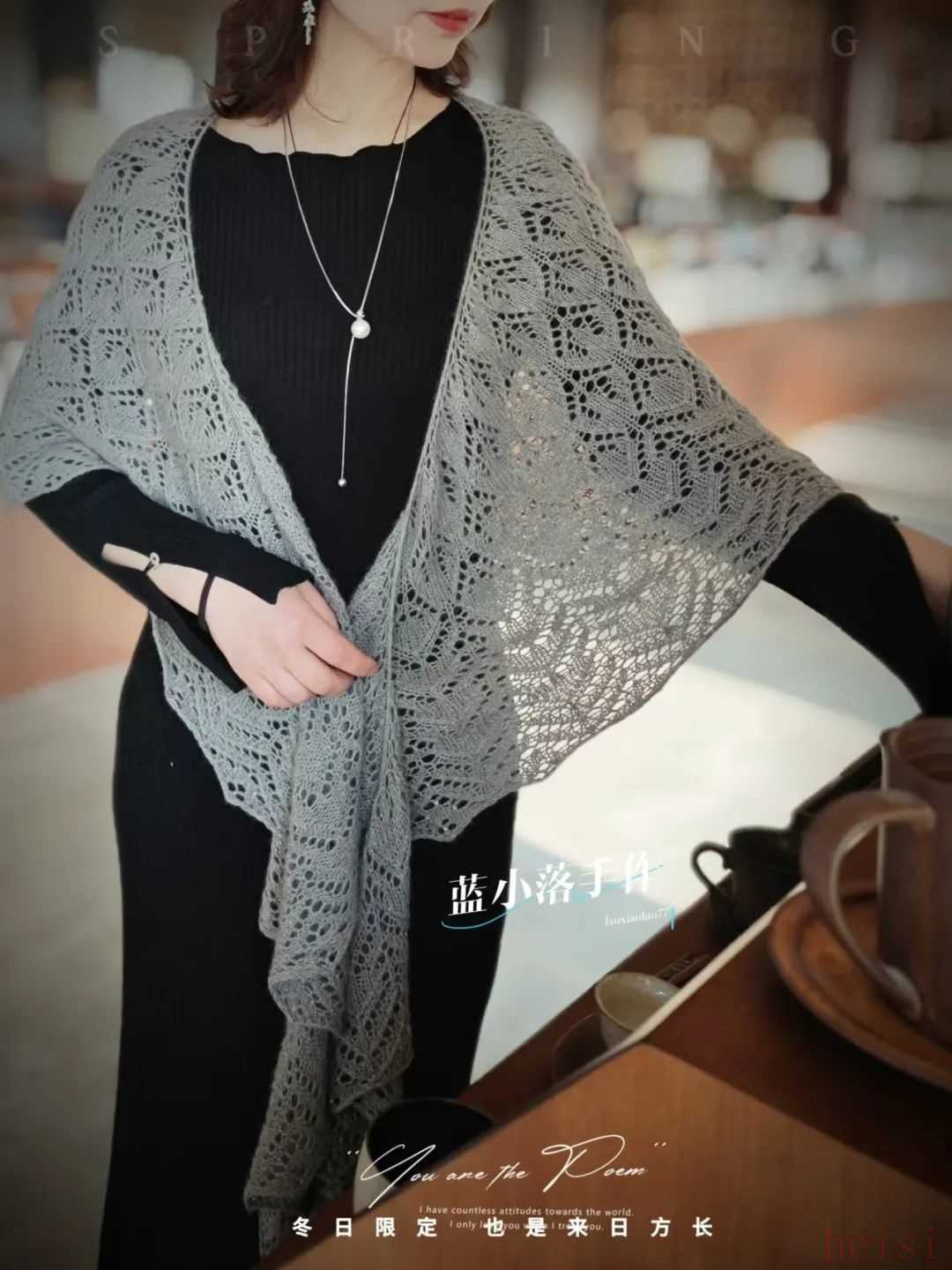 达人作品分享 年初织了云貂羊绒版单螺纹围巾,还剩下1筒半,这次再加了一点织了这条串珠月牙形披肩,图解来自美女潇潇翻译的《经典的棒针蕾丝》40款一书中,原版是要1900颗珠子,小落偷工减料只是在花样C部分加了珠子,咳咳,也很漂亮袄。(自己的,啥都好,嘿嘿)这样一条云貂羊绒镂空蕾丝围巾,无疑是为生活添彩的妙物。精选上乘云貂羊绒,轻软如云朵,贴肤即享温柔呵护,保暖性更是出众,伴你度过寒凉时光。简约温婉的叶子花,宛如花园中绽放的繁花,每一处细节都饱含匠心。当微风拂过,围巾轻轻飘动,珠子若隐若现,风情万种。搭配性极强。搭配简约大衣,瞬间提升整体气质,让你在冬日街头脱颖而出;与连衣裙搭配,又能增添一份优雅与奢华。云貂羊绒镂空蕾丝围巾,是时尚配饰,更是自我表达的载体。它见证着你的每一个重要时刻,陪伴你走过人生的漫长旅程。