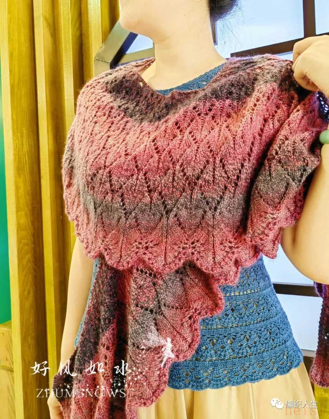 群里的阿豆小姐姐帮忙做的模特拍照,让披肩看起来更美了。