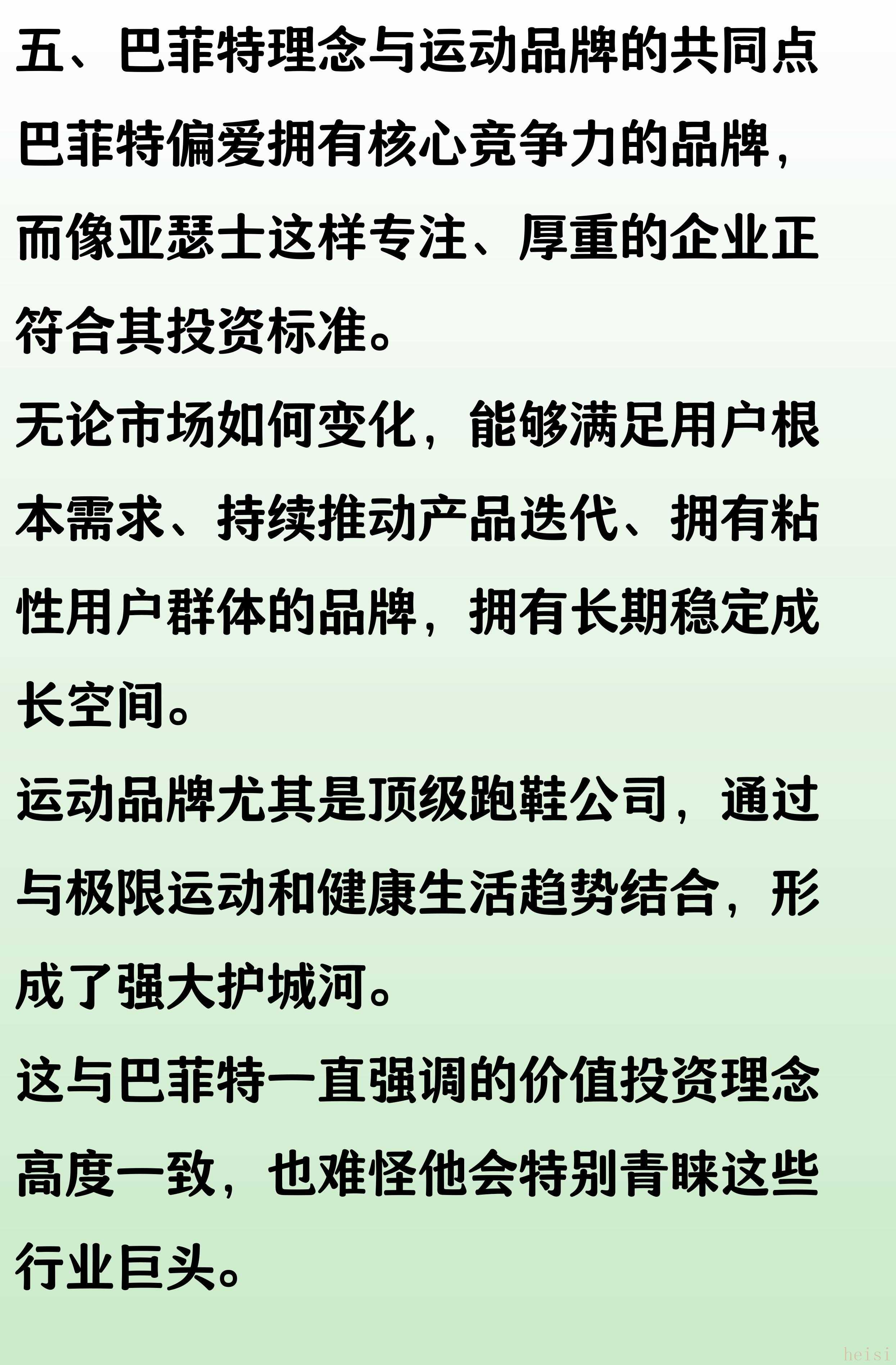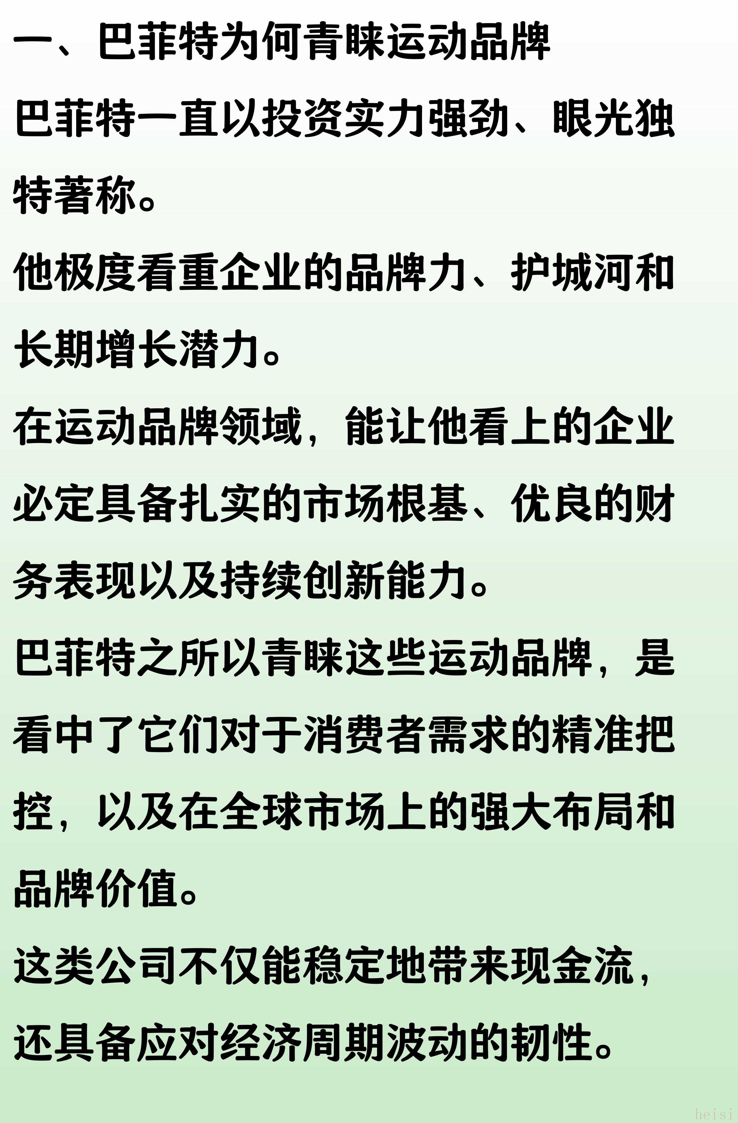 1. "巴菲特青睐/投资":伯克希尔·哈撒韦公司(巴菲特的公司)在2018年收购了亚瑟士(ASICS)约21.8%的股份,成为其重要股东。