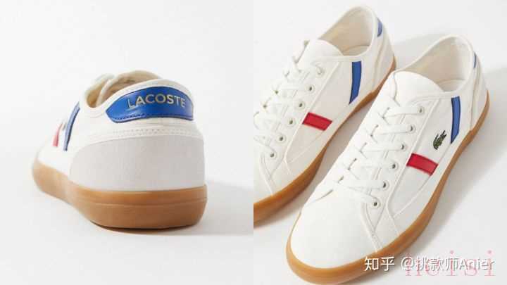 若是偏爱帆布球鞋的话,那么你则可参考这双Lacoste Sideline Tricolor Sneaker!醒目的红蓝织带,中央还有着Lacoste经典的鳄鱼标志,精巧又具些微复古运动风,而焦糖色的橡胶底使得鞋身的休闲率性感更为加成。此外,鞋后跟的蓝皮革+Logo烫金字无疑也是提升整体质感的细节关键!