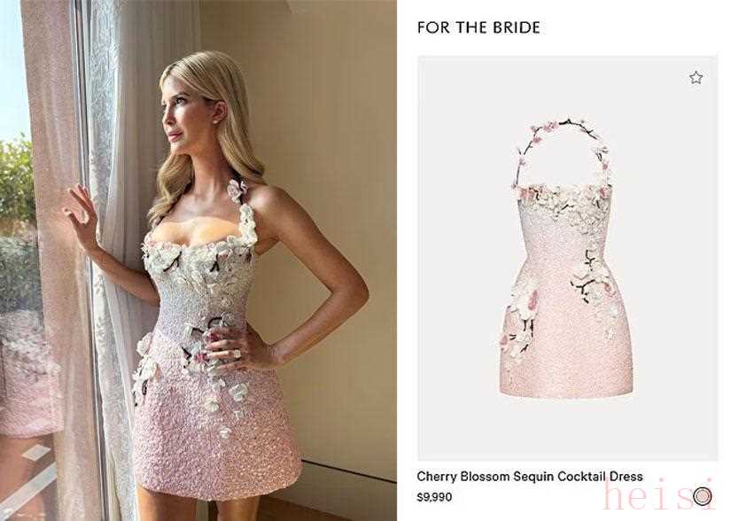 现年43岁的伊万卡涂着较为浓厚的腮红,看上去比那现年55岁的新娘子还要喜庆。而她出席婚礼时所穿的礼服裙,也是颇为“重工”的,立体的樱花花瓣装饰很有特色,符合奥斯卡·德拉伦塔的一贯风格。