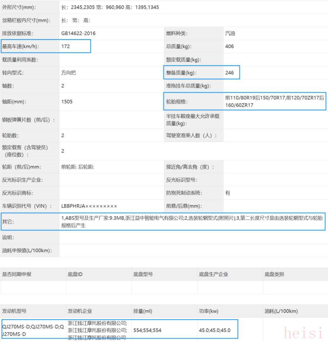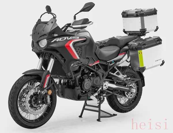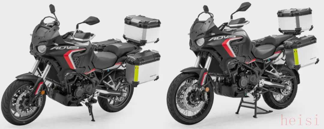 从申报的两个版本中我们可以看到主要区别在于轮毂与轮胎的选用上,公路版采用前17后17寸铝轮毂搭配公路胎,而越野版则采用前19后17寸辐条轮毂搭配越野胎。两款车型原厂均配备护杠和三箱,前减震同样采用马祖奇品牌,刹车则由Brembo提供,看得出配置这块依旧很钱江。
