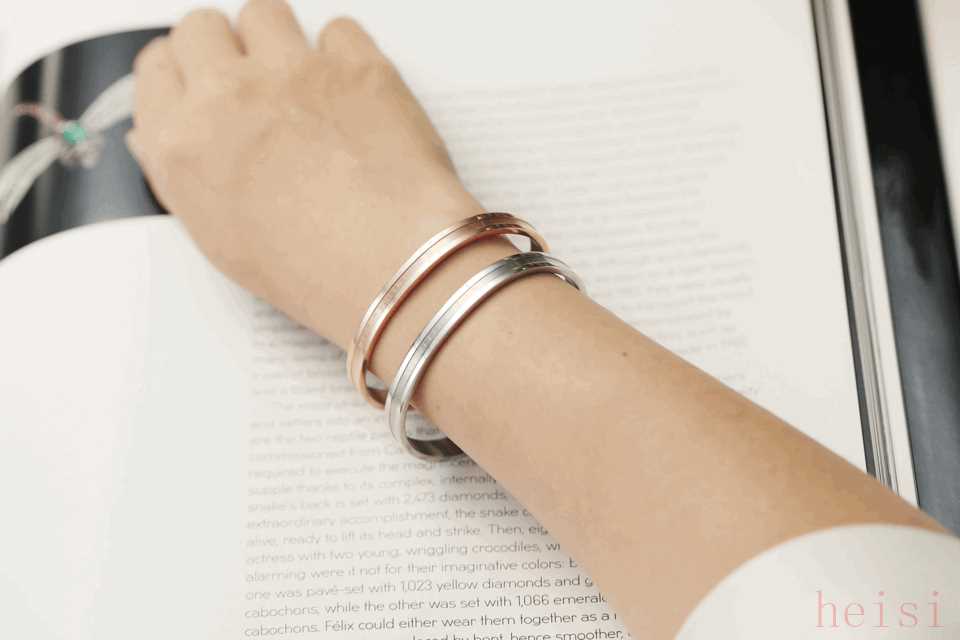 单戴还是叠搭,光泽度都很好。灵活的半开口设计,可以随心变换适应尺寸,完全不挑手腕,送人特别合适~
