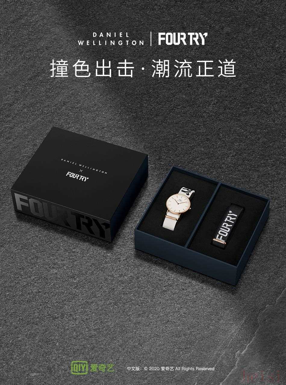 DW最近还和《潮流合伙人》这档在年轻人中特别火热的潮流节目合作,推出了DW x Fourtry联名款。