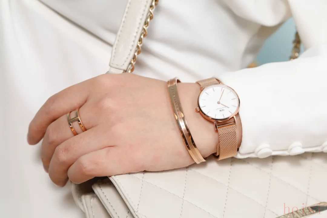 这一系列延续了DW的经典设计,将抛光与磨砂的高质感结合,用瓷白色与玫瑰金相间彰显优雅气质,无论通勤还是度假佩戴,都无可挑剔~