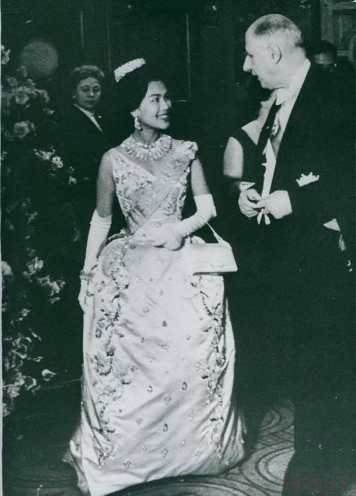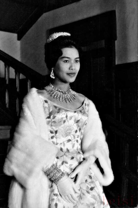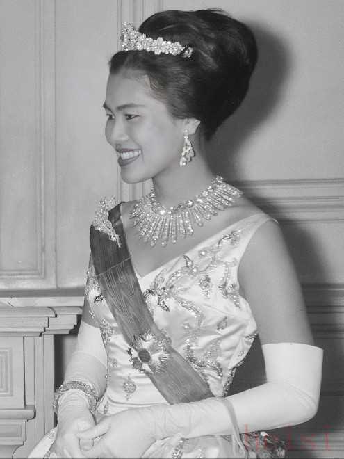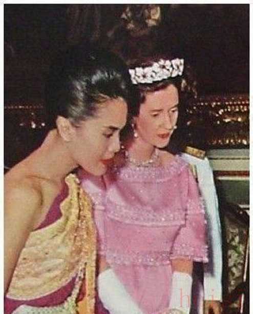 而当天晚上,比利时设国宴接待普密蓬夫妇,华丽刺绣晚礼服再次让诗丽吉出挑不已,她的脖子上依旧戴着俄式王冠,头上则加了另外的皇冠,这两顶皇冠一起来使用的方法,想必让比利时王室成员也为之叹服了吧?