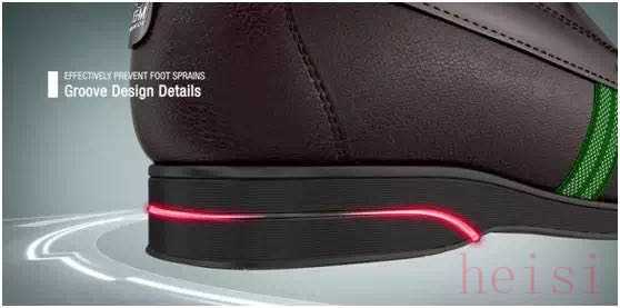 鞋跟内底增加工学凹槽设计,受力防护,矫正行走力度,有效防止崴脚。