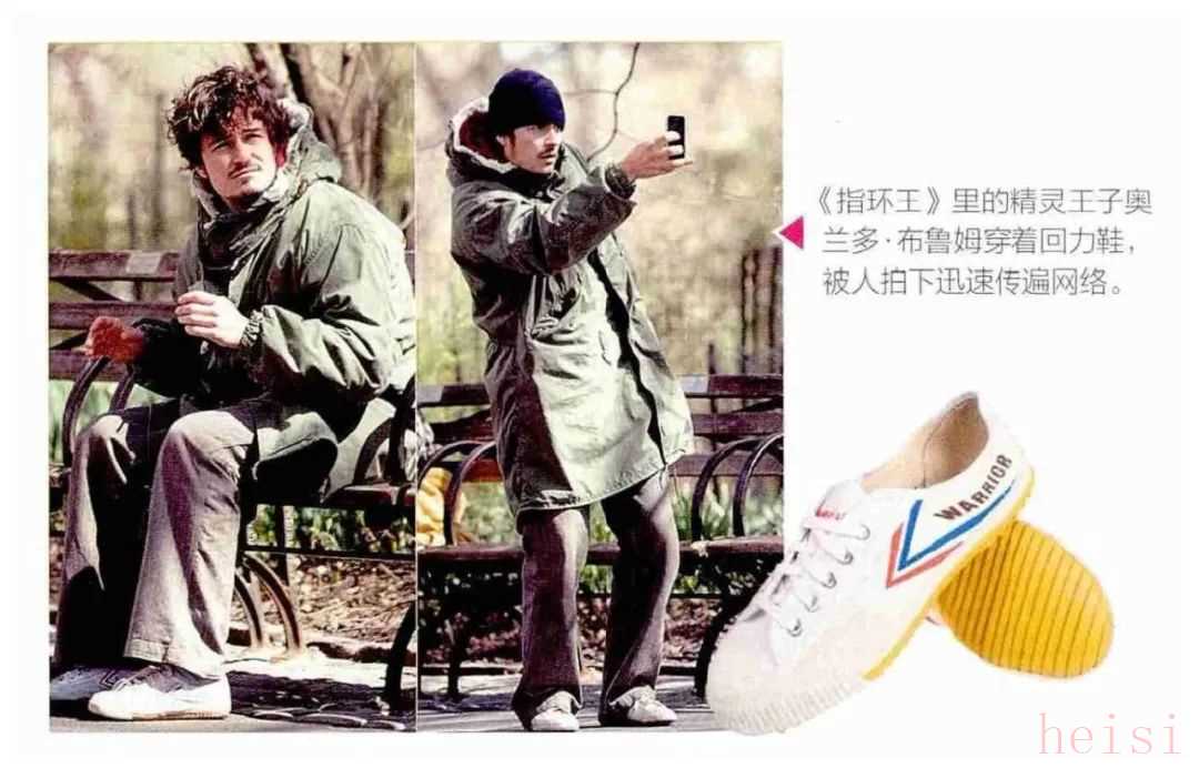 而2008年,转机忽然到来。2008年,参演过《指环王》、《加勒比海盗》等影片的英国演员奥兰多·布鲁姆穿着飞跃球鞋的照片刷屏,媒体争相报道,称回力球鞋成为国外潮流。