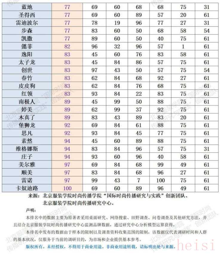 具体的榜单完整名单和详细排名数据,建议查阅北京服装学院官方发布的相关公告、新闻稿,或者当时主流财经、时尚媒体对榜单的报道。