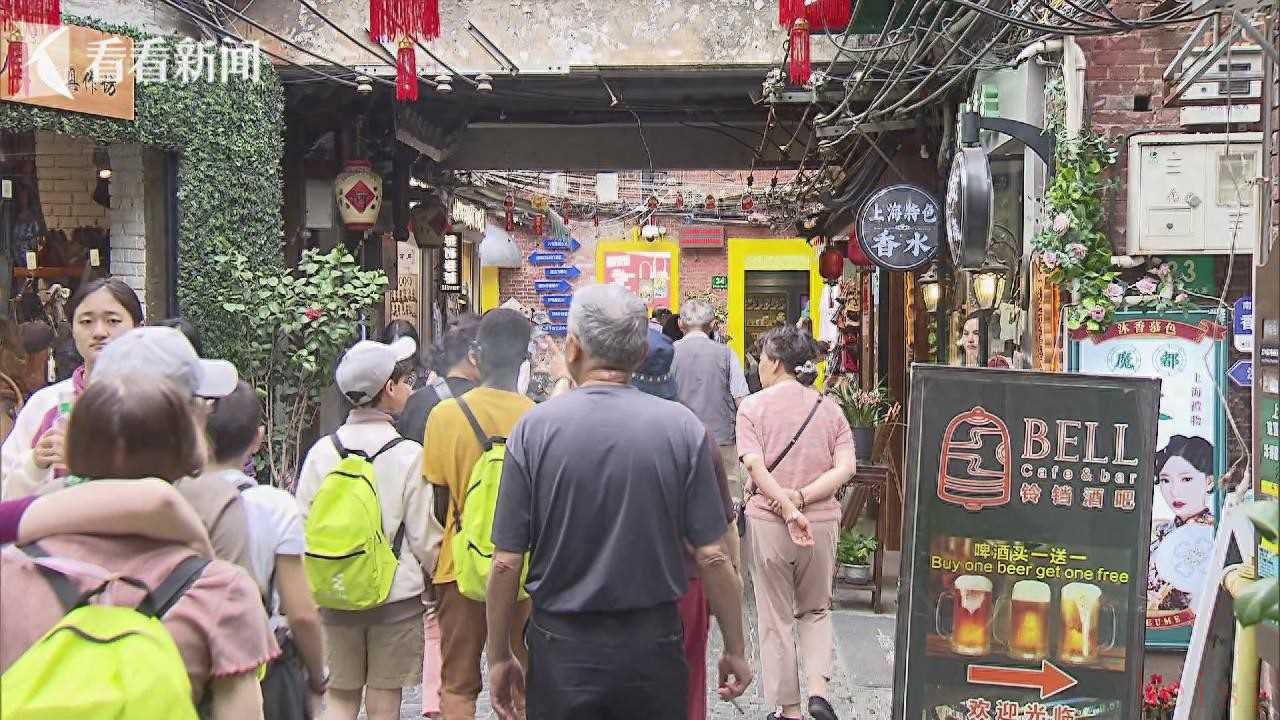 田子坊的人气从去年下半年开始猛增,今年1到4月,工作日平均每天的人流量达到了26000左右,双休日更是突破了3万人次,达到了五六年来的巅峰。在免签政策的利好之下,境外游客也增加明显,占到游客总量的4成,还吸引来了被反向种草的国内游客们,来的人不会空手而归,总得吃点喝点再买点。“在我们韩国人眼中,这里是很有名的地方,我们买了些香料、茶和一些杯子。”“姐妹没来过,我再带她来兜一圈,没想到那么多人,这个弄堂就是我们上海的腔调,只要你想买的都有。”