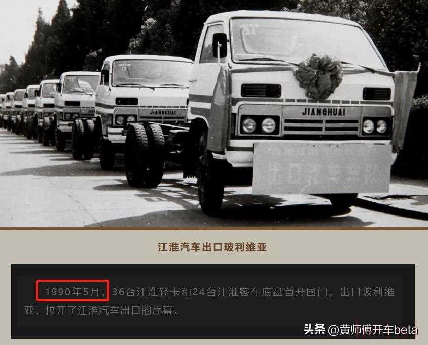 在各种评论中,大家对左延安的评价都相当高,认为江淮今天几乎所有成就,都能追溯到左延安时期打下的基础,但事实上,我对这件事是存疑的,左延安上任是1990年5月,客车底盘下线,官方只说是1990年,没有具体时间,但出口时间明确标注了,也是1990年5月,总不能他当月上任、当月研发、当月出口吧……只能说,左延安老先生的贡献很大,但没有各类报道中那么大。