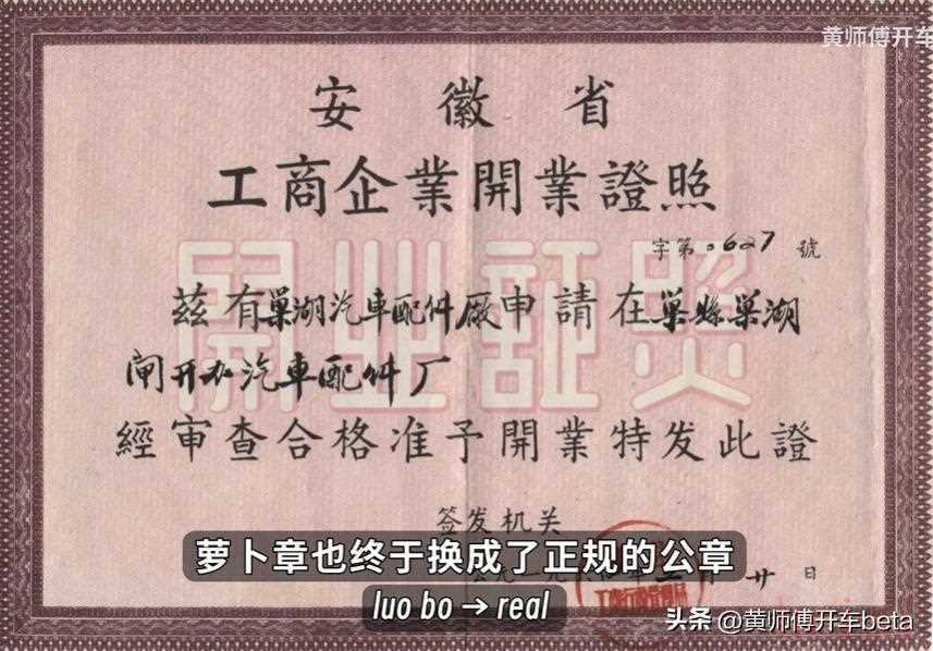 这俩技术员自作主张的萝卜章上,刻的名字叫:巢湖汽车配件厂,然后就是建工厂、交付订单,折腾两年半之后,1964年5月终于和安徽省内燃机修配厂合并,并搬到了合肥,萝卜章也终于换成了正规的公章。