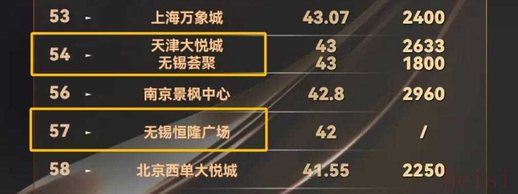 无锡恒隆广场,凭借超强实力稳稳占据榜单第57位而咱们的“家庭欢乐中心”无锡荟聚同样表现不俗,拿下第54名相较2023年的再次跃升4位