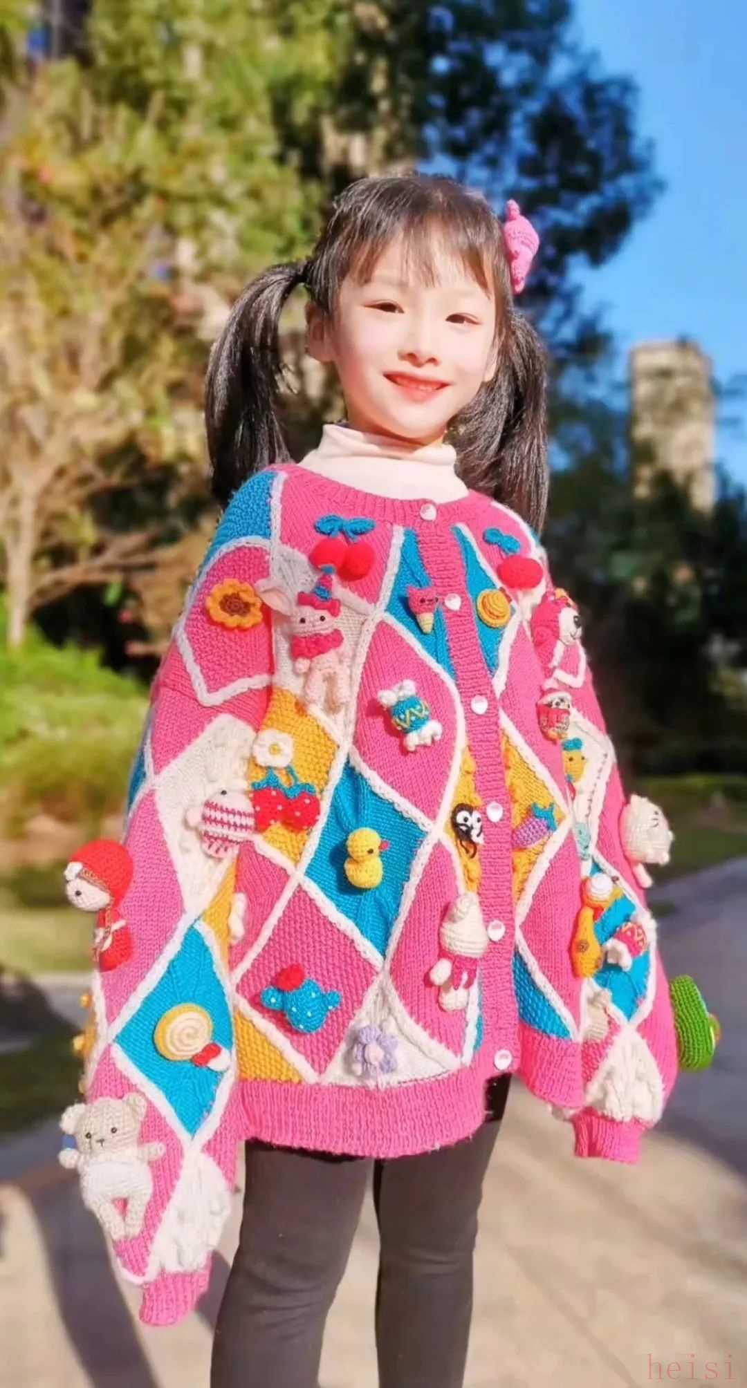而最有故事的一件衣服,是一件拼色毛衣,上面挂满了史迪仔、草莓熊等小玩偶——定睛一看,小玩偶身上还穿着小衣服。“这是我第一次学做棒针,织了拆、拆了织,加上做玩偶,整整用了3个月。”林妙卿说。