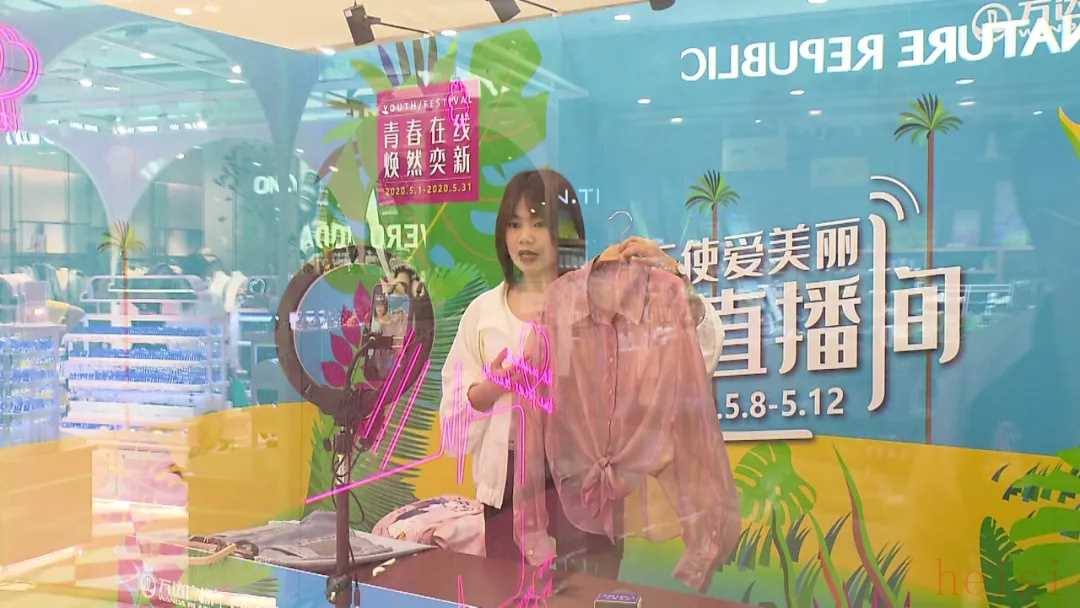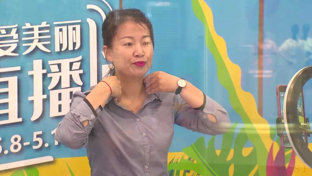 下午4点,金山万达一家品牌店铺的店主胡芹,已经在这个直播间里开始新一轮的直播。五一期间经历两次直播的她已经驾轻就熟,在手机镜头前积极推荐刚到的新品。
