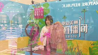 下午4点,金山万达一家品牌店铺的店主胡芹,已经在这个直播间里开始新一轮的直播。五一期间经历两次直播的她已经驾轻就熟,在手机镜头前积极推荐刚到的新品。