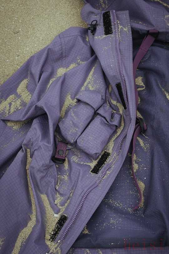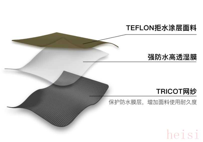 这款冲锋衣为摩托车冲锋衣,外观简约帅气,在设计上保留了瑞典机车夹克的设计语言,但内部却不简单。七个不同功能的口袋设计增加了秋冬的收纳装载能力,“MOLLE系统”具备便携的可拓性,定制的3L三层复合性能三防面料——TEFLON拒水涂层面料+强防水高透湿膜+TRICOT网纱,具备防水、防油、防污的优点。