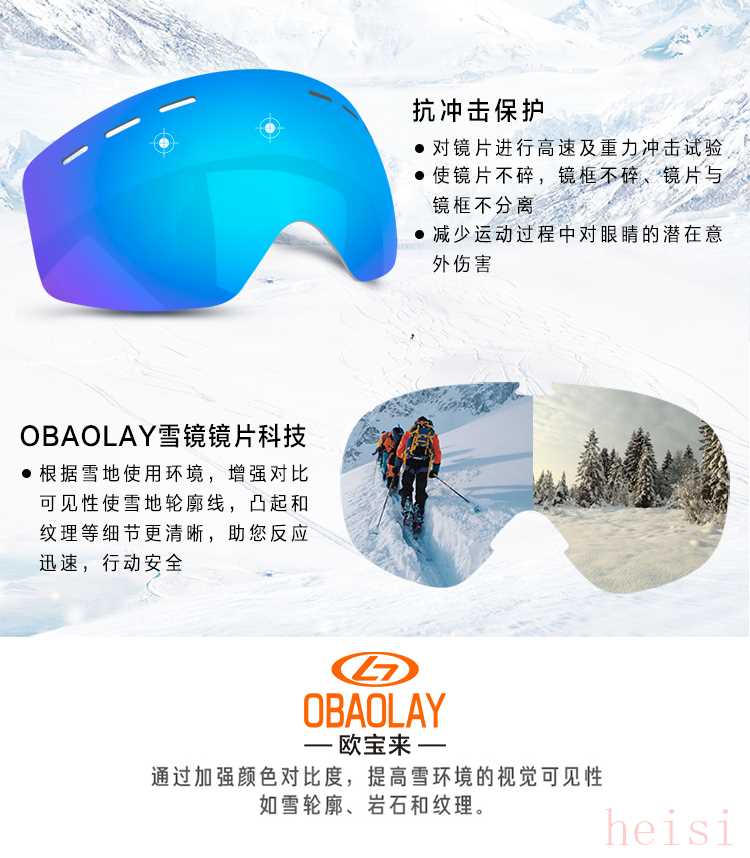 obaolay滑雪眼镜真REVO镀膜,双层防雾镜片,能够防雾、防雪盲。