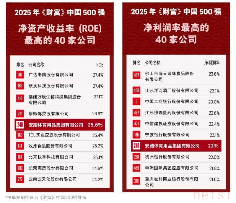日前,财富中文网发布2025《财富》中国500强榜单,同时发布中国500强中净资产收益率(ROE)和净利润率最高的40家公司,这两个子榜单备受瞩目,安踏集团凭借出色的财务表现,位居ROE榜第19位、净利润率榜第32位。