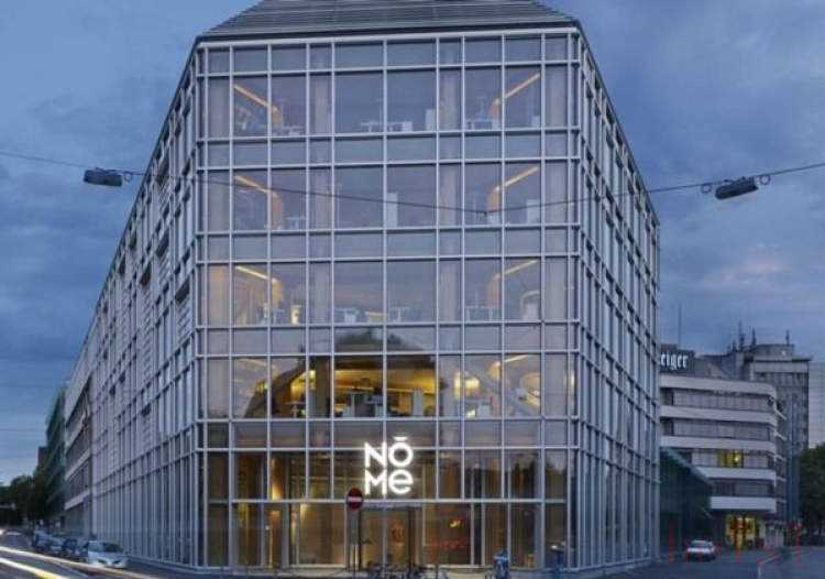目前,记者已经无法在NOME的官网上,找到网友所说的那张照片。但是,通过搜索引擎的识图功能进行搜索后,记者却发现,超过十篇对“NOME”的新闻报道中采用过该照片,而该照片与瑞士某公司大楼照片进行对比后,相似度高达99%。