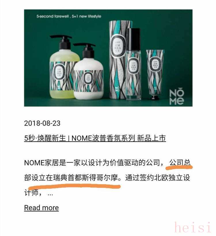 对此,小饼又是疑惑又是气愤,她很想弄清楚,“NOME”究竟是不是瑞典的品牌?